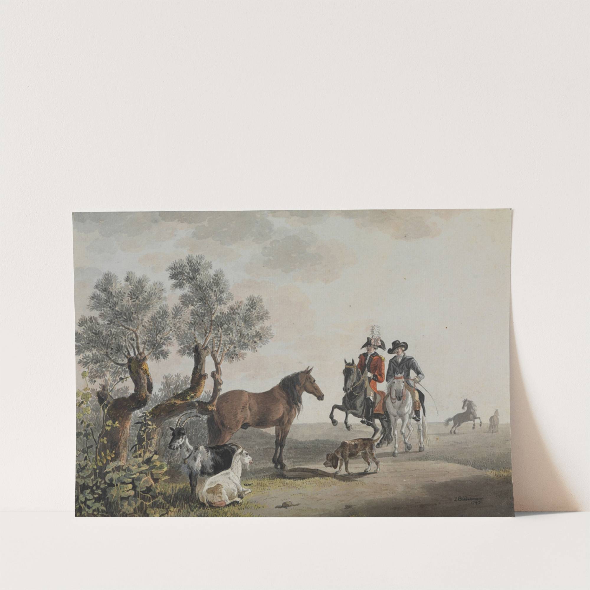 Zwei Reiter, die ihren Weg über eine Tierweide nehmen (1783) by Johann Jakob Biedermann - Wall Art Print