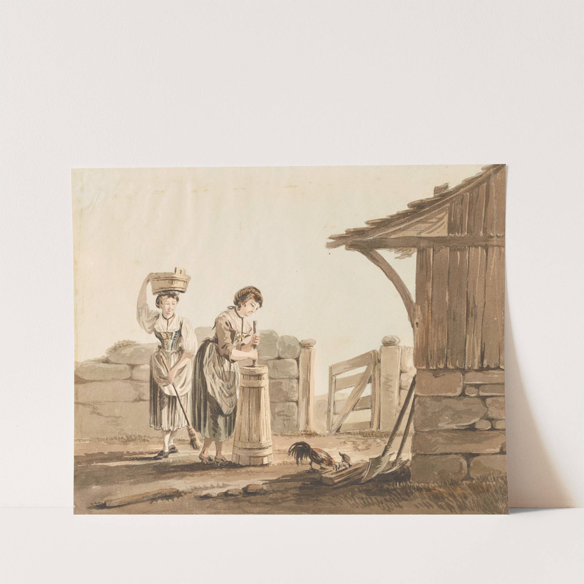 Bäuerinnen beim Buttern by Johann Karl Müllener - Wall Art Print