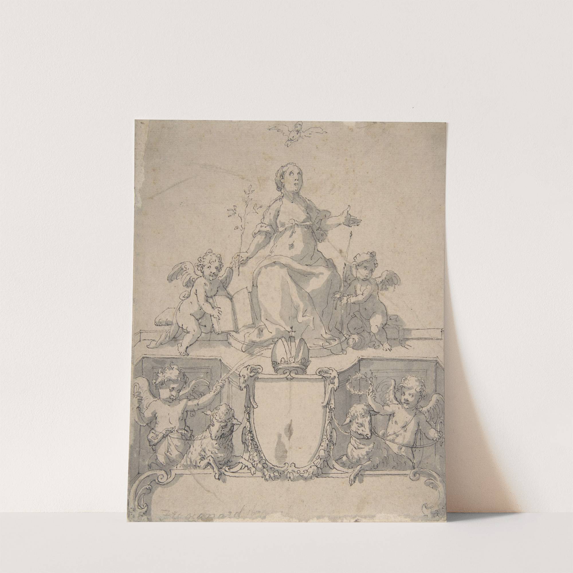 Cartouche with a Crown, the Virgin and the Holy Ghost, and Four Putti by Johann Matthias Kager - Wall Art Print