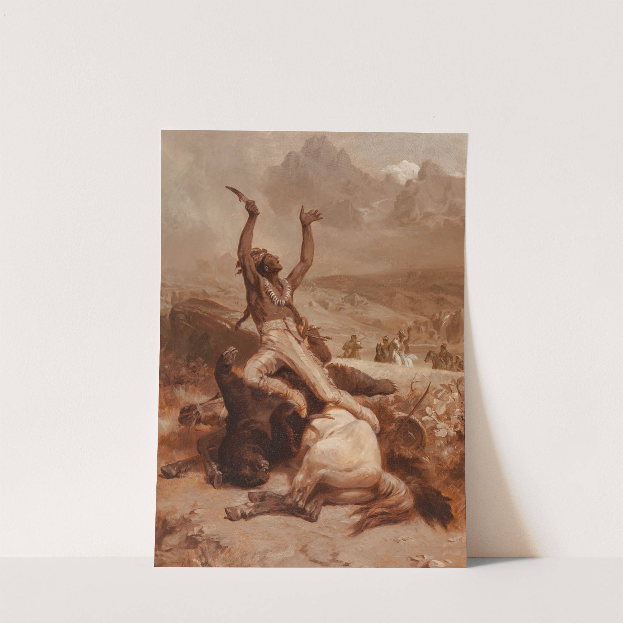 Indian brave rejoicing over slain bear by Johannes Adam Simon Oertel - Wall Art Print