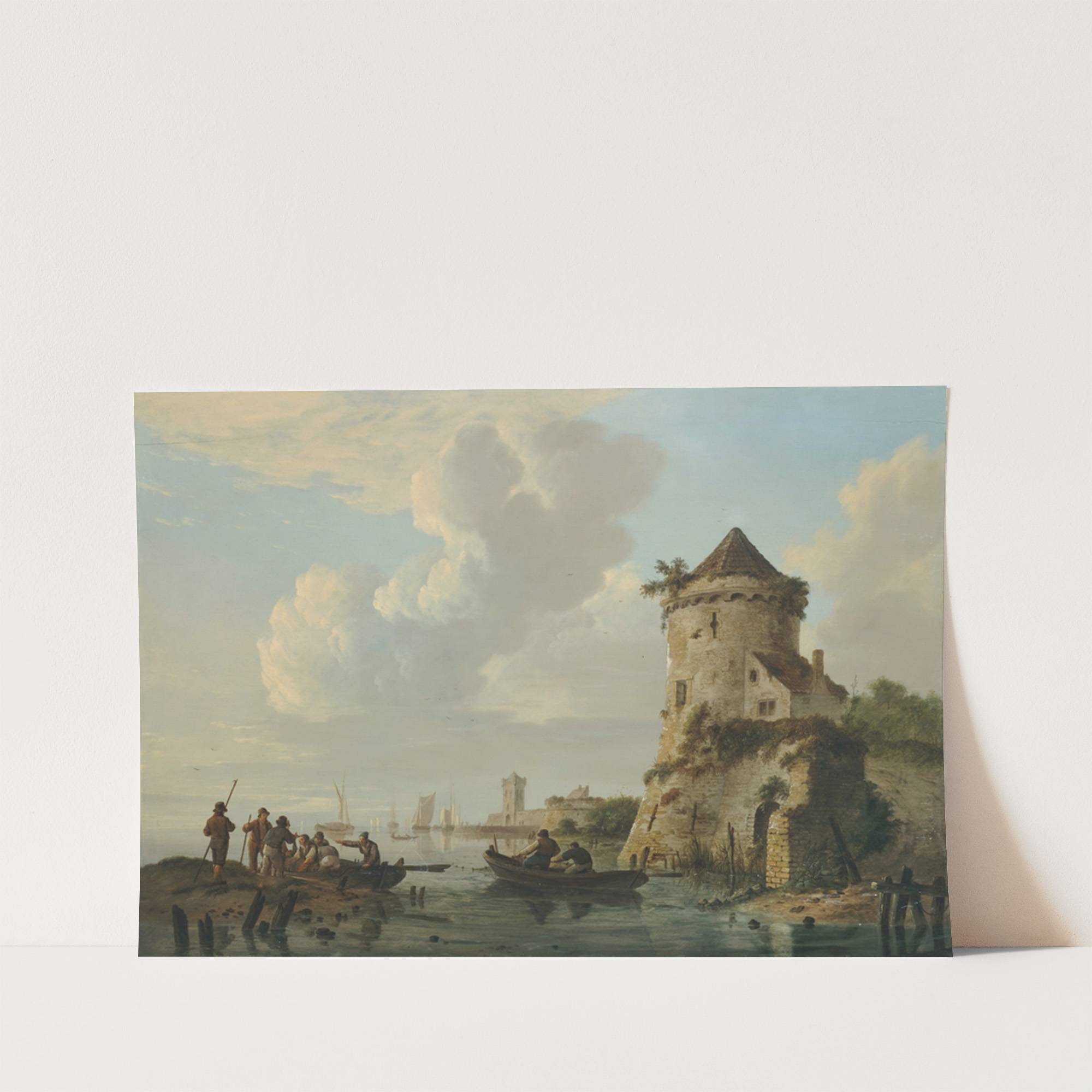 Pulling in nets at sunset by Johannes Hermanus Koekkoek - Wall Art Print