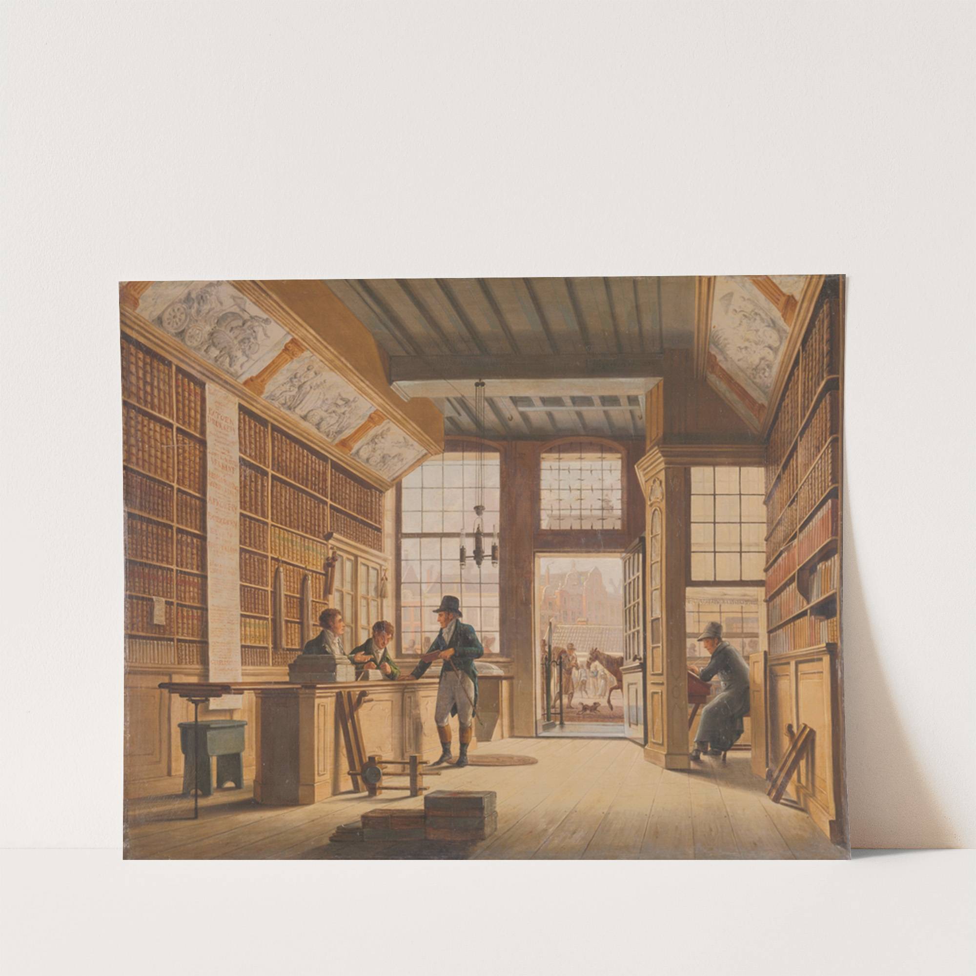 The Shop of the Bookdealer Pieter Meijer Warnars on the Vijgendam in Amsterdam by Johannes Jelgerhuis - Wall Art Print