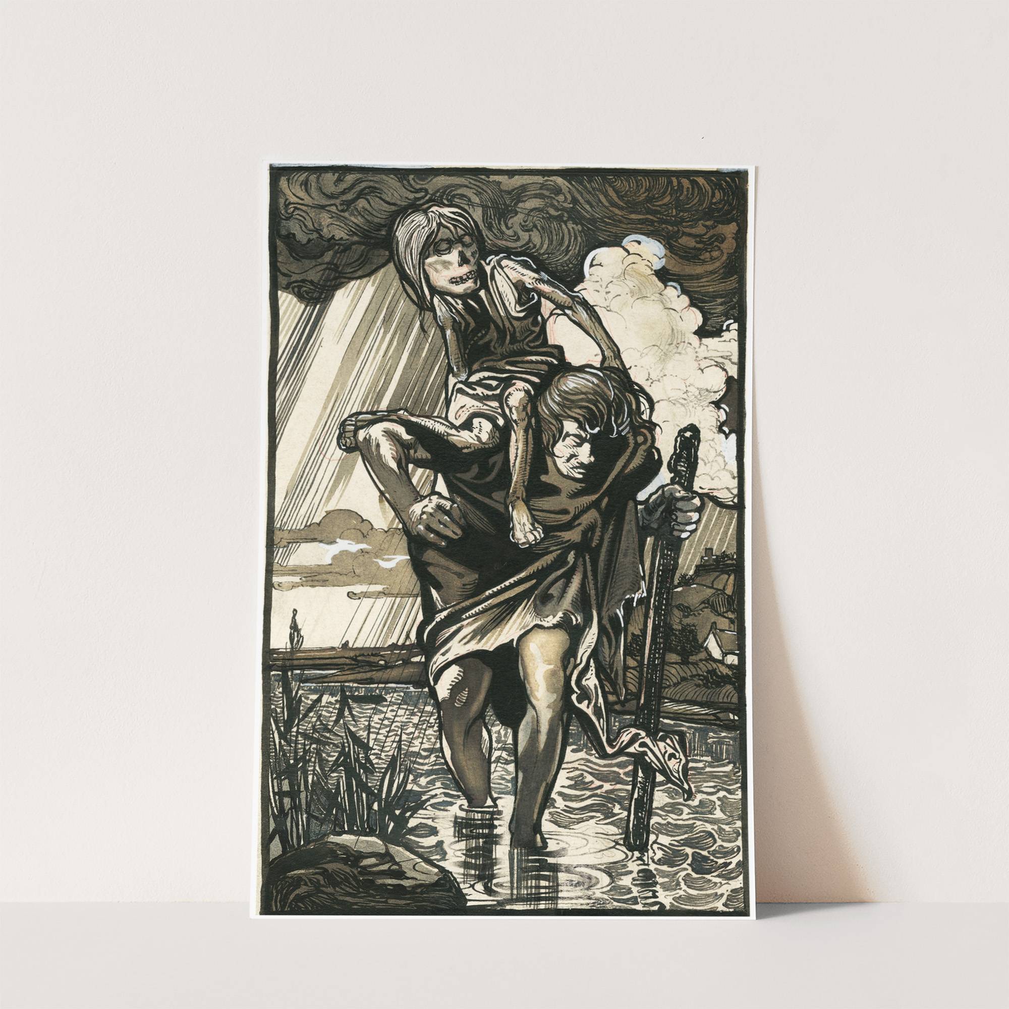 Door het water wadende man met skelet op de rug by Johannes Josephus Aarts - Wall Art Print
