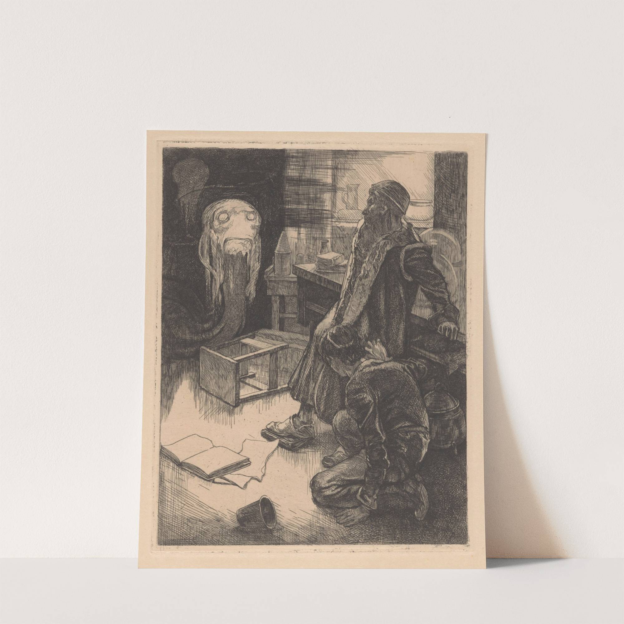 Twee mannen en een monster in een werkkamer by Johannes Josephus Aarts - Wall Art Print