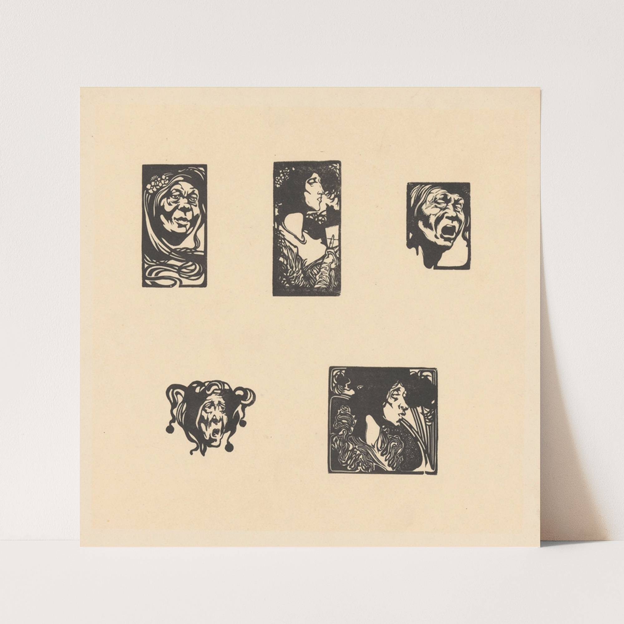 Vijf vignetten met hoofden by Johannes Josephus Aarts - Wall Art Print