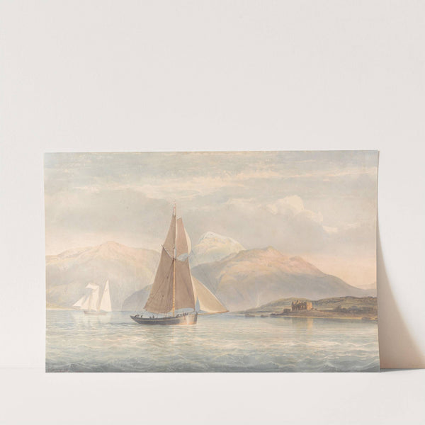 Boat Sailing to the Right with Mountains in the Background by John Christian Schetky - Wall Art Print