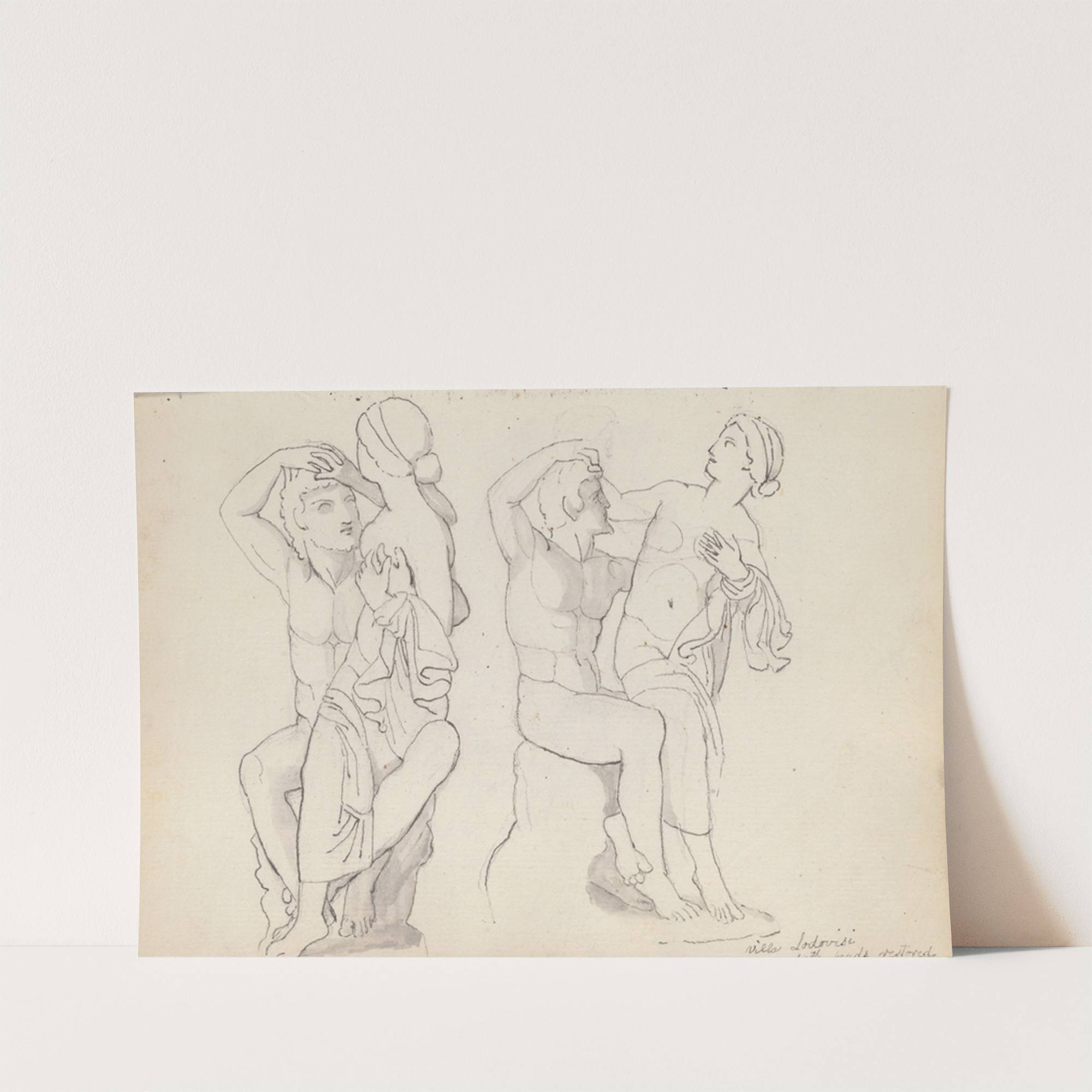 Two Studies of The Seated Satyr and Nymph, Villa Ludovisi, Rome by John Flaxman  - Wall Art Print