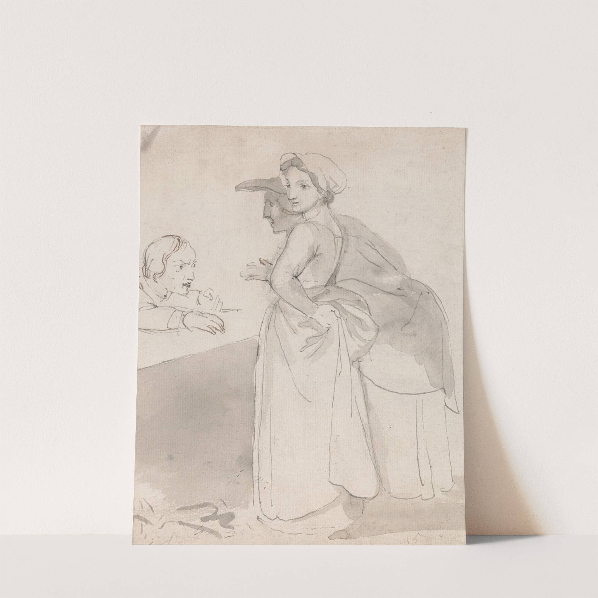 Two Women Talking to a Man at a Counter by John Flaxman  - Wall Art Print