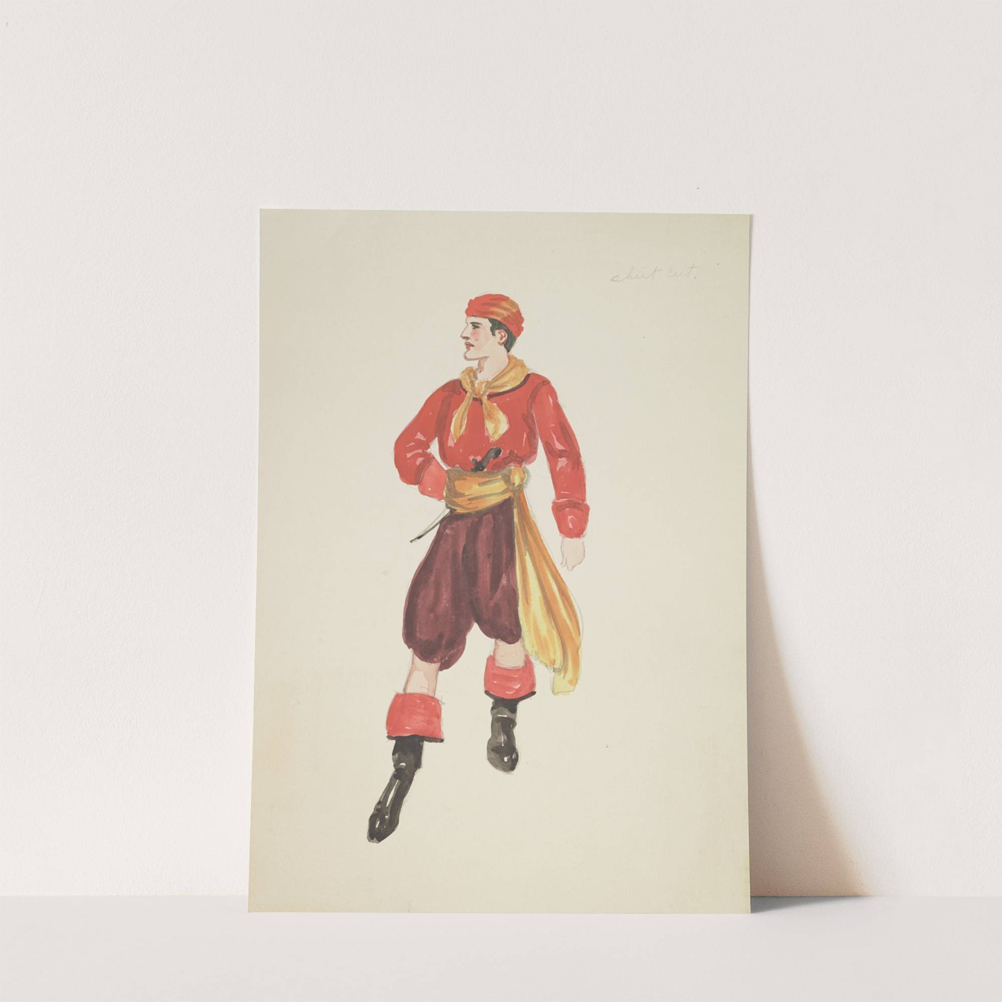 Pirates of Penzance: Red shirt, purple breeches, yellow sash, yellow scarf, red cap, and dagger (1934-1943) by John Glidden - Wall Art Print