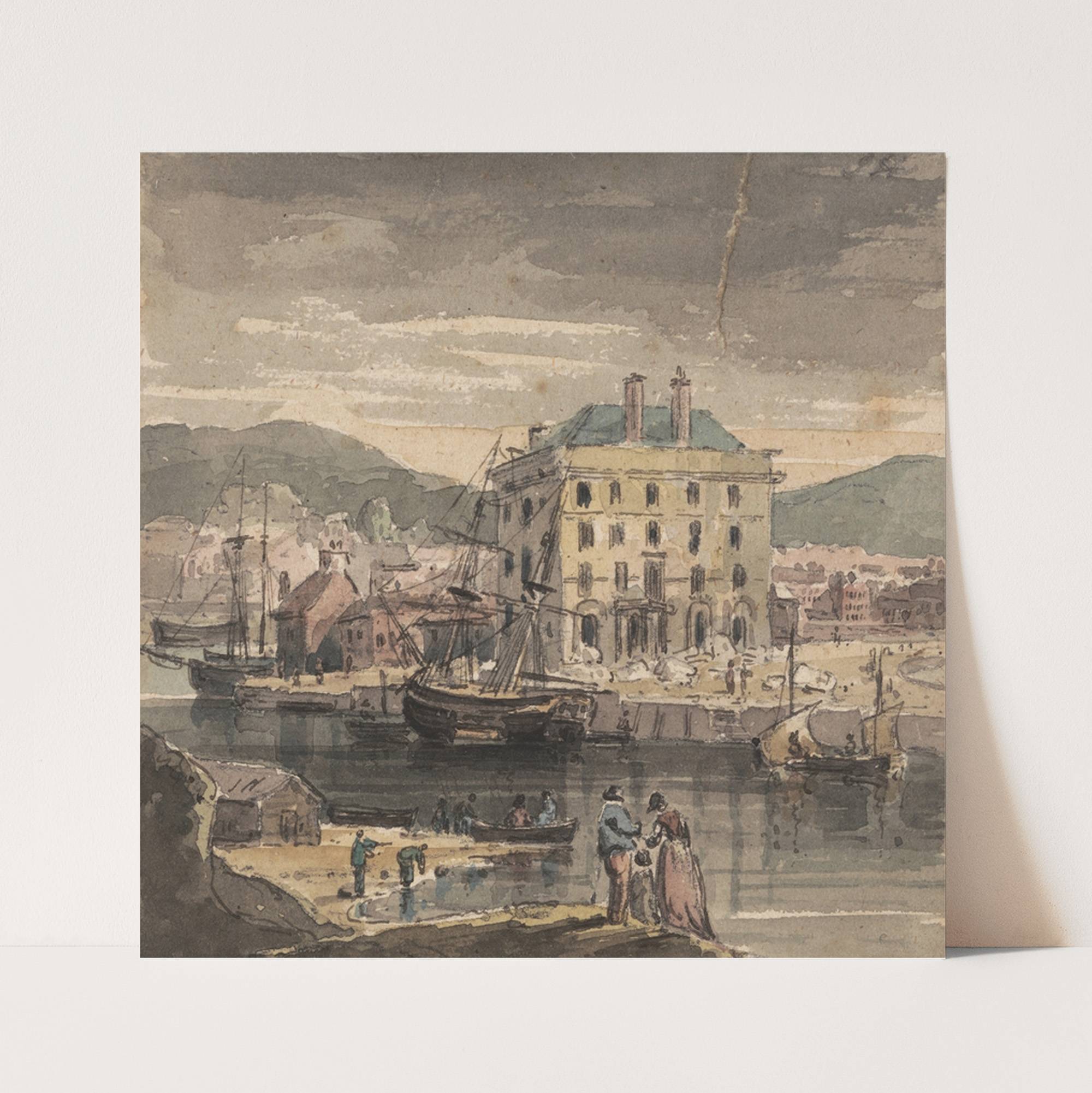 Weymouth: with figures, shipping and view of the Custon House by John Henderson - Wall Art Print