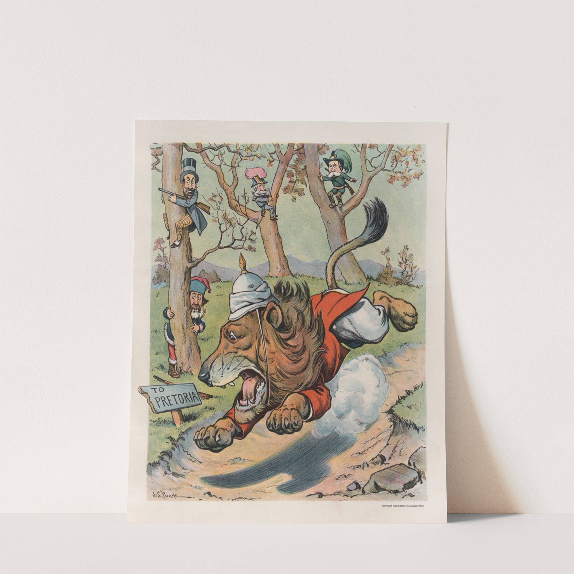 The hunters didn’t expect a live lion by John Samuel Pughe - Wall Art Print