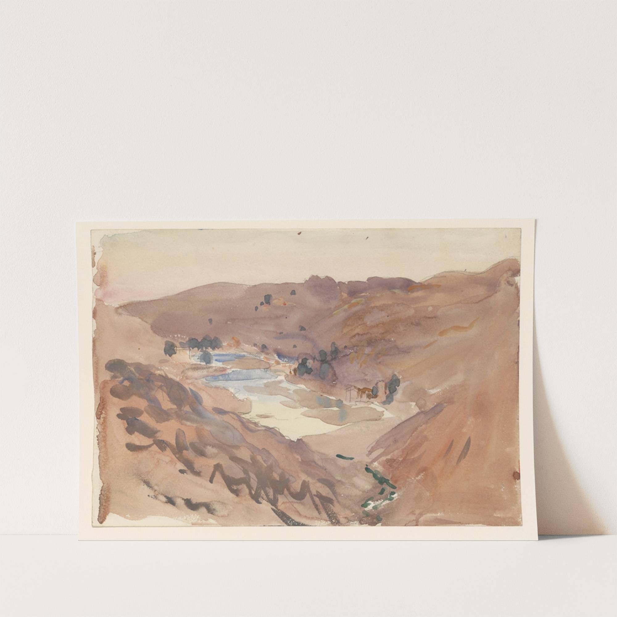 Experience the serene beauty of nature with this captivating watercolor painting titled "Toledo" by John Singer Sargent. This artwork beautifully captures a tranquil mountain landscape bathed in soft light, invoking a sense of calm and natural elegance. The color palette...