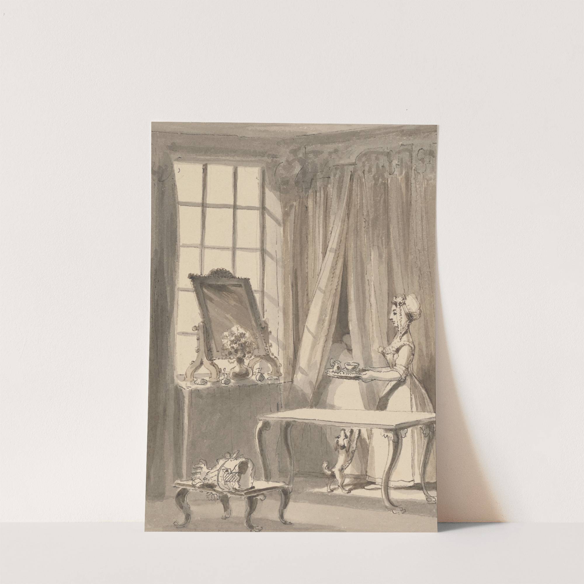 Hogarth Has Made Breakfast and Sends up a Cup to His Wife at the Same Time Ordering the Little Dog to be Admitted to her Mistress’s Bedchamber by John Thomas Smith - Wall Art Print