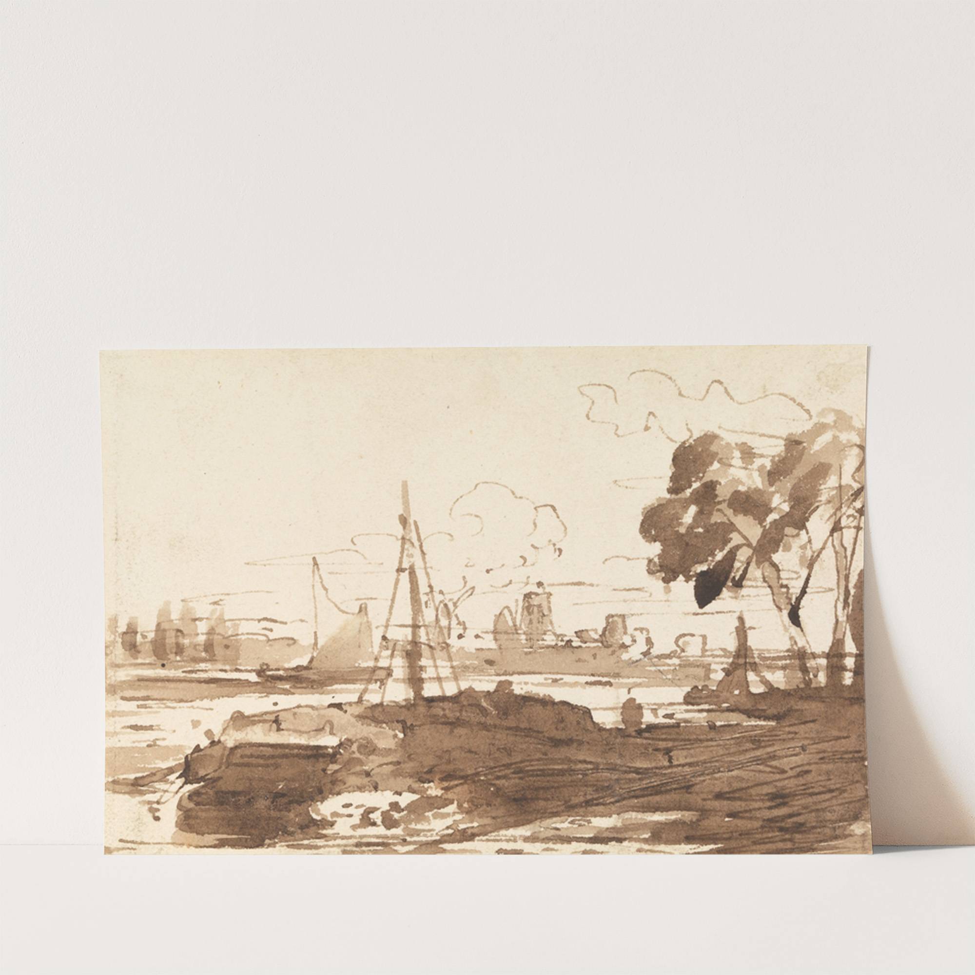 Ships on a River with Buildings in the Distance by John Varley - Wall Art Print