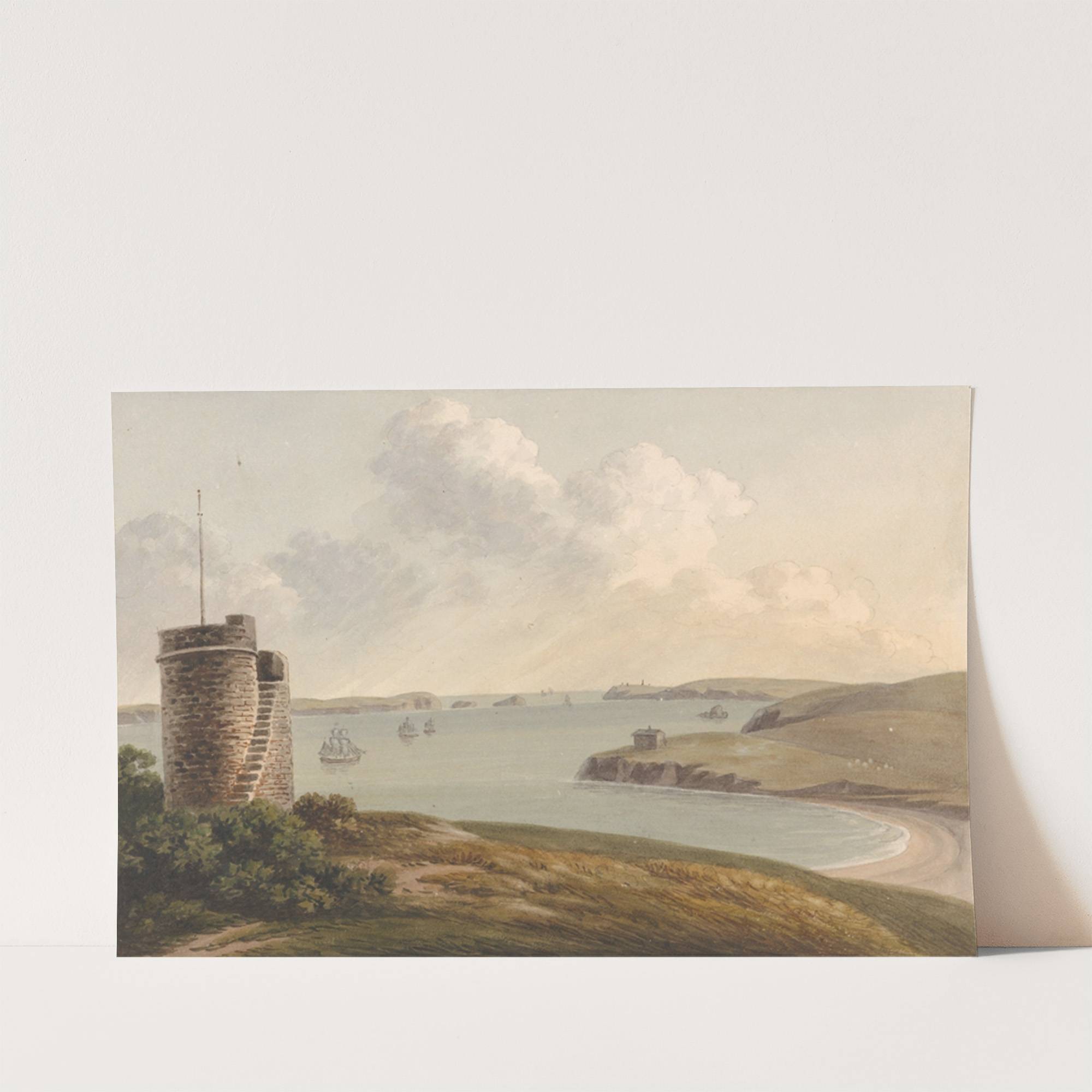 View from the Vidette Near Hakin on Signal Hill, Looking Beyond Nangle Point and Thorn Island, Pembrokeshire by John Warwick Smith - Wall Art Print