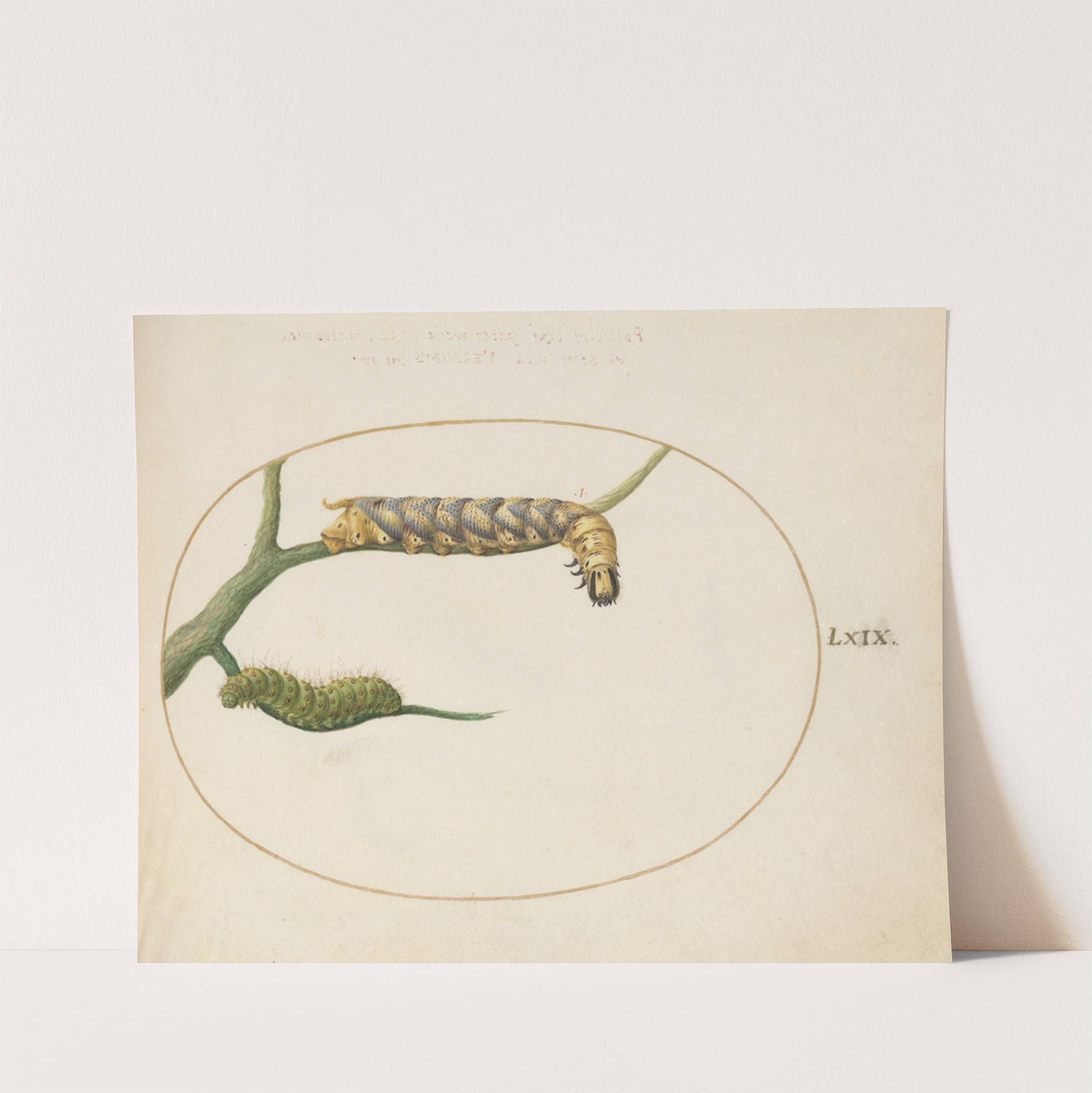 Emperor Moth Caterpillar with a Second Caterpillar on a Branch (1575-1590) by Joris Hoefnagel - Wall Art Print