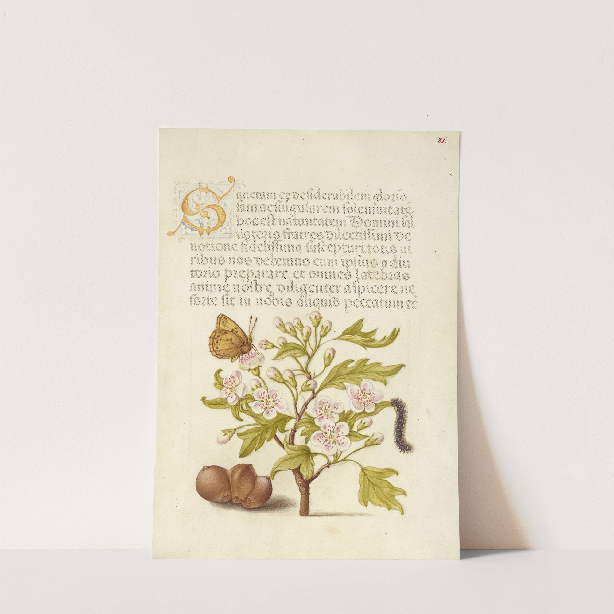 Insect, English Hawthorn, Caterpillar, and European Filbert (1561–1596) by Joris Hoefnagel - Wall Art Print
