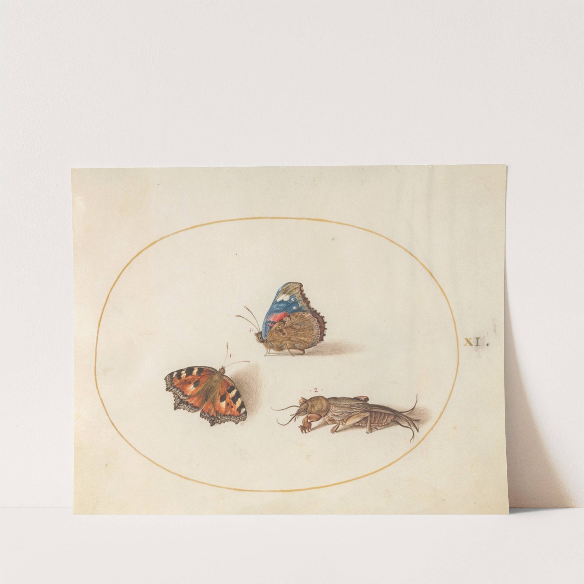 Plate 11; Small Tortoiseshell and Red Admiral Butterflies with a Mole Cricket (1575-1590) by Joris Hoefnagel - Wall Art Print