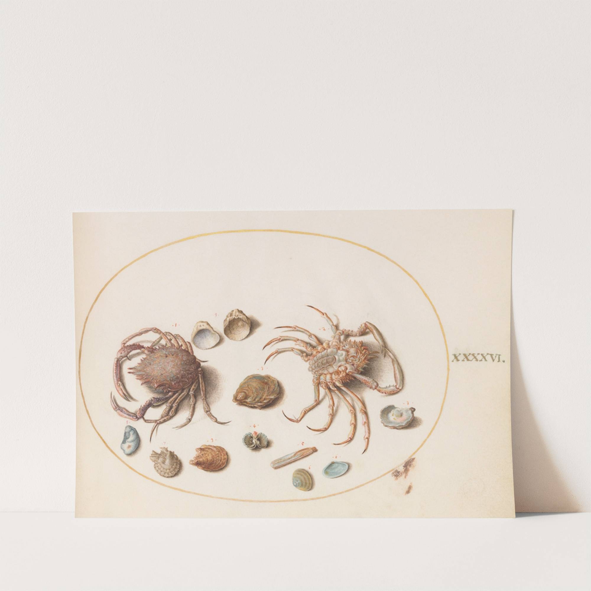 Plate 46; Two Crabs with Seashells (1575-1590) by Joris Hoefnagel - Wall Art Print
