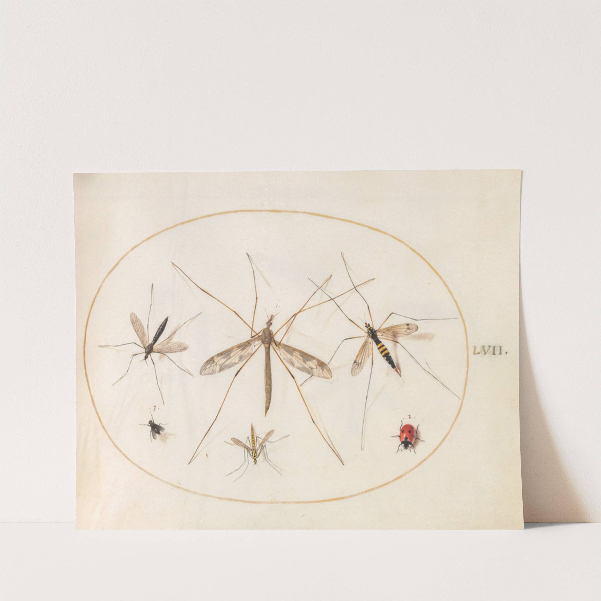Plate 57; A Ladybug, a Fly, and Four Other Insects (1575-1590) by Joris Hoefnagel - Wall Art Print