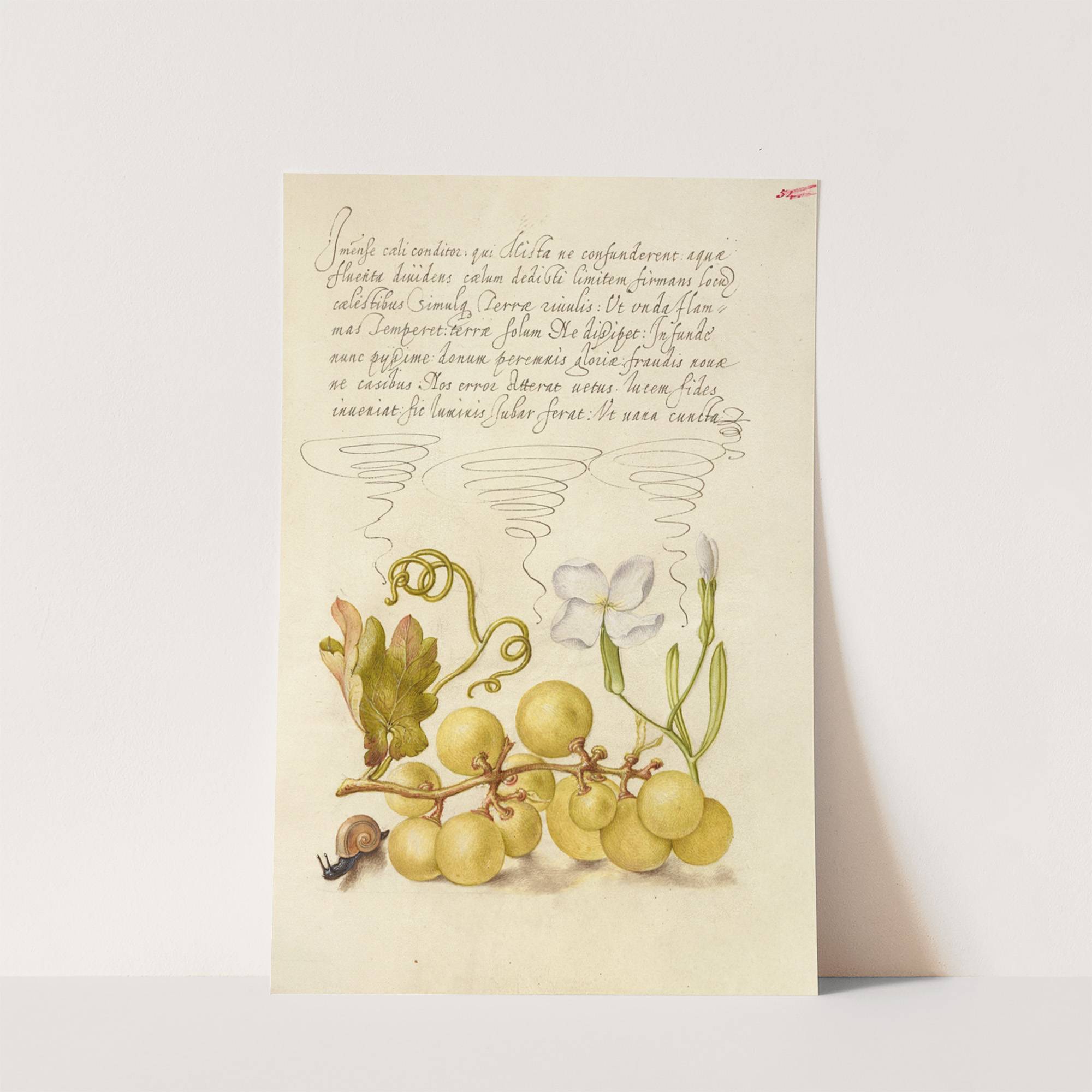 Wine Grape, Gillyflower, and Land Snail (1561–1596) by Joris Hoefnagel - Wall Art Print
