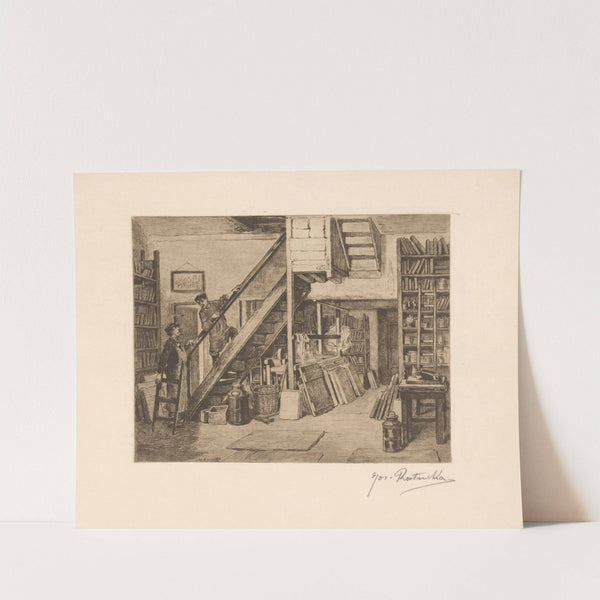 Two men at a staircase in an Antwerp lithograph workshop by Jos Ratinckx - Wall Art Print