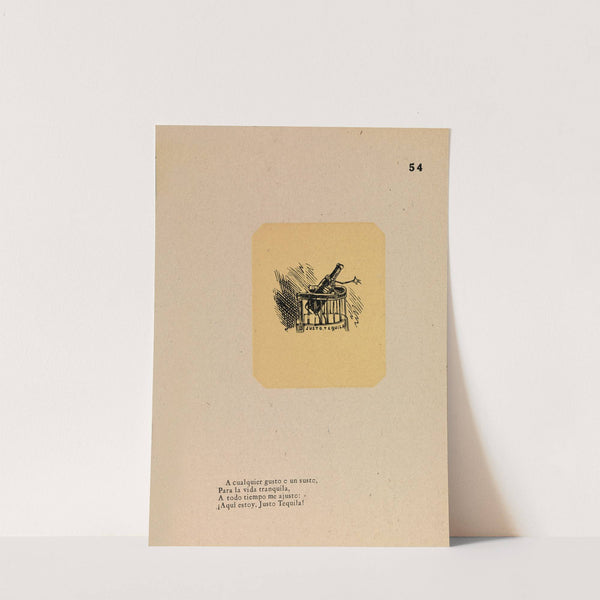 This art print features "Adjuster Tequila" by the renowned artist José Guadalupe Posada. The image is rendered in bold black ink on a soft beige background, creating a striking contrast that highlights the intricate details and sharp lines of Posada's...