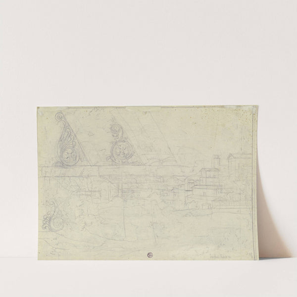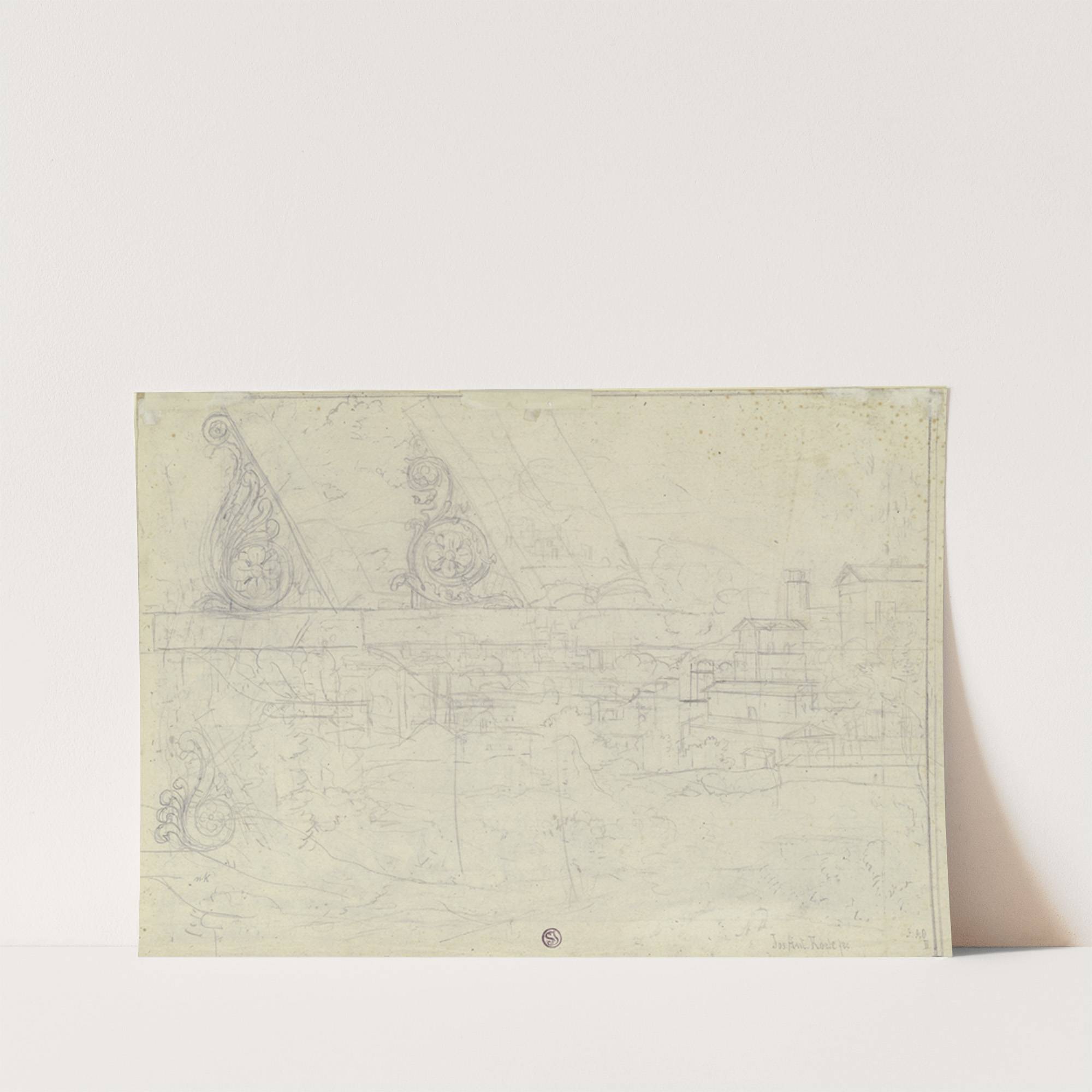 Ansicht von Rom, darüber drei Entwürfe für Voluten-Konsolen by Joseph Anton Koch - Wall Art Print