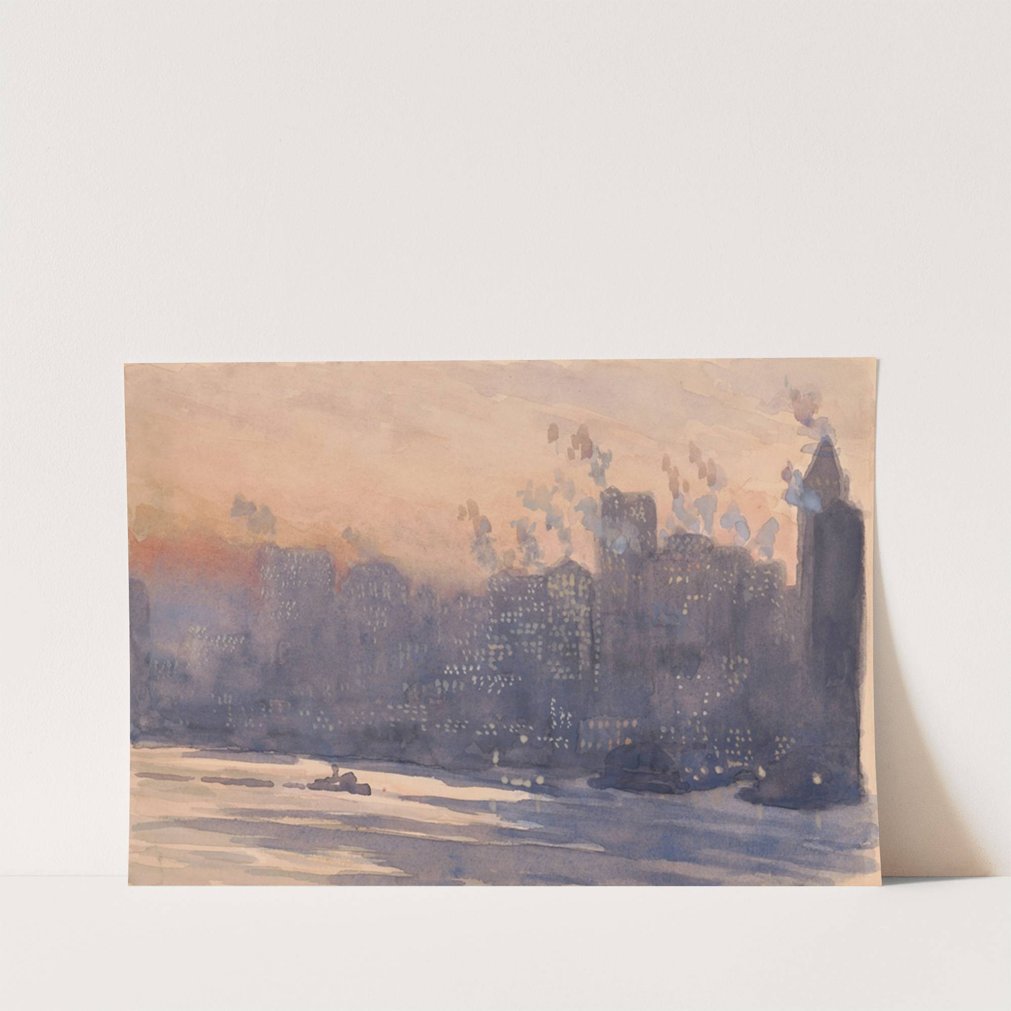 New York City harbor and skyline at night by Joseph Pennell - Wall Art Print