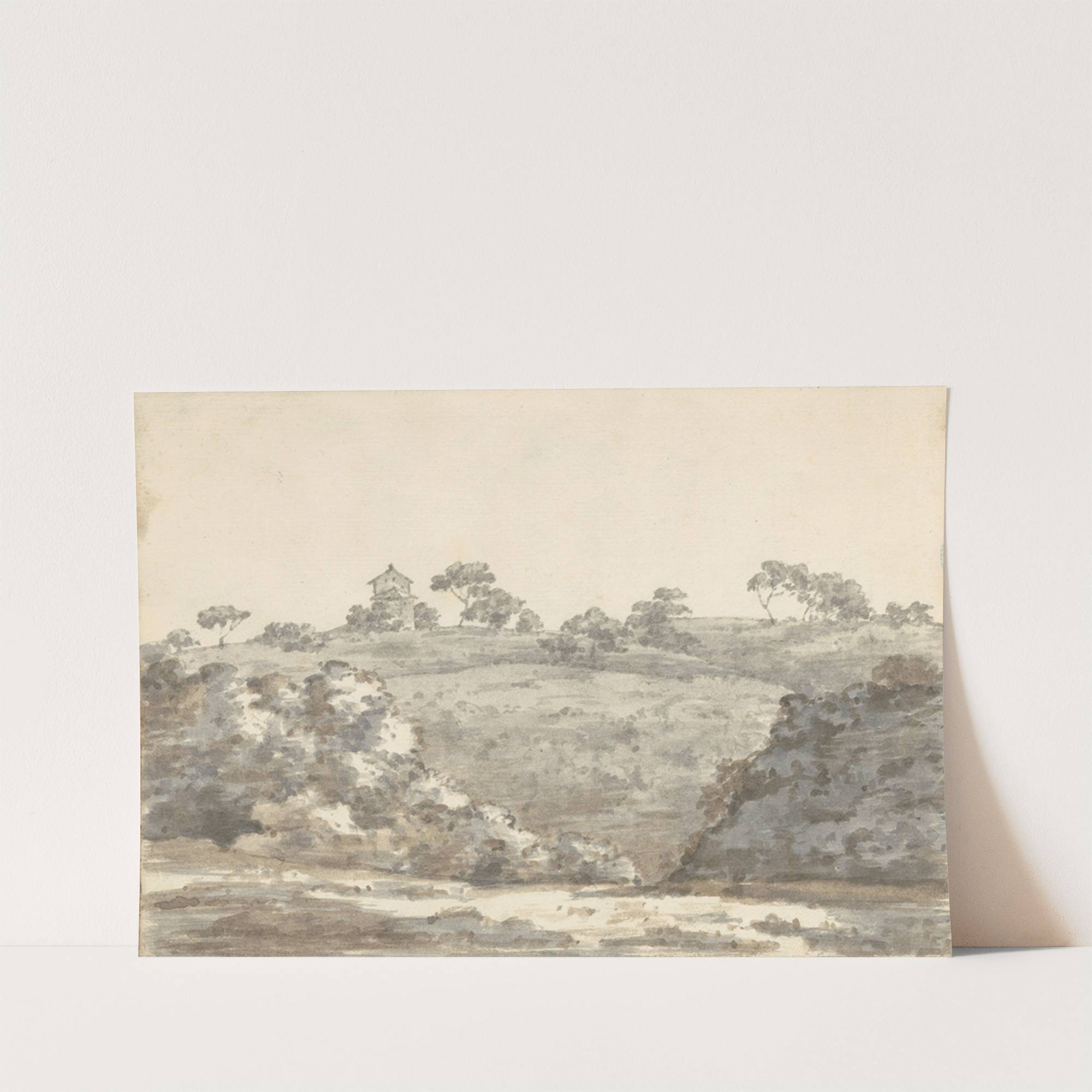 Landscape with a Two-Story Building on a Hill by Joseph Wright of Derby - Wall Art Print