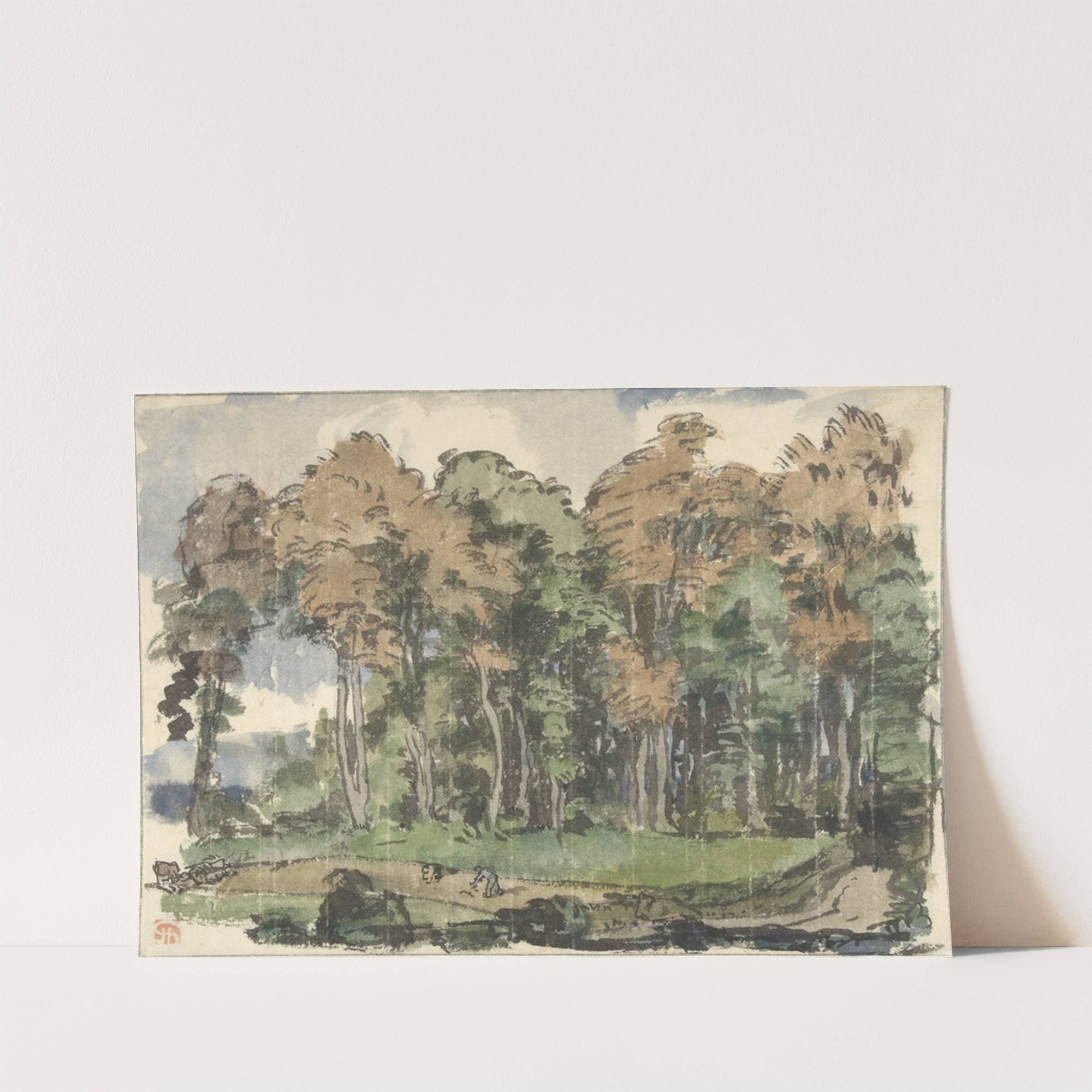 Weg aan een bosrand, met landlieden aan het werk by Jules Chadel - Wall Art Print