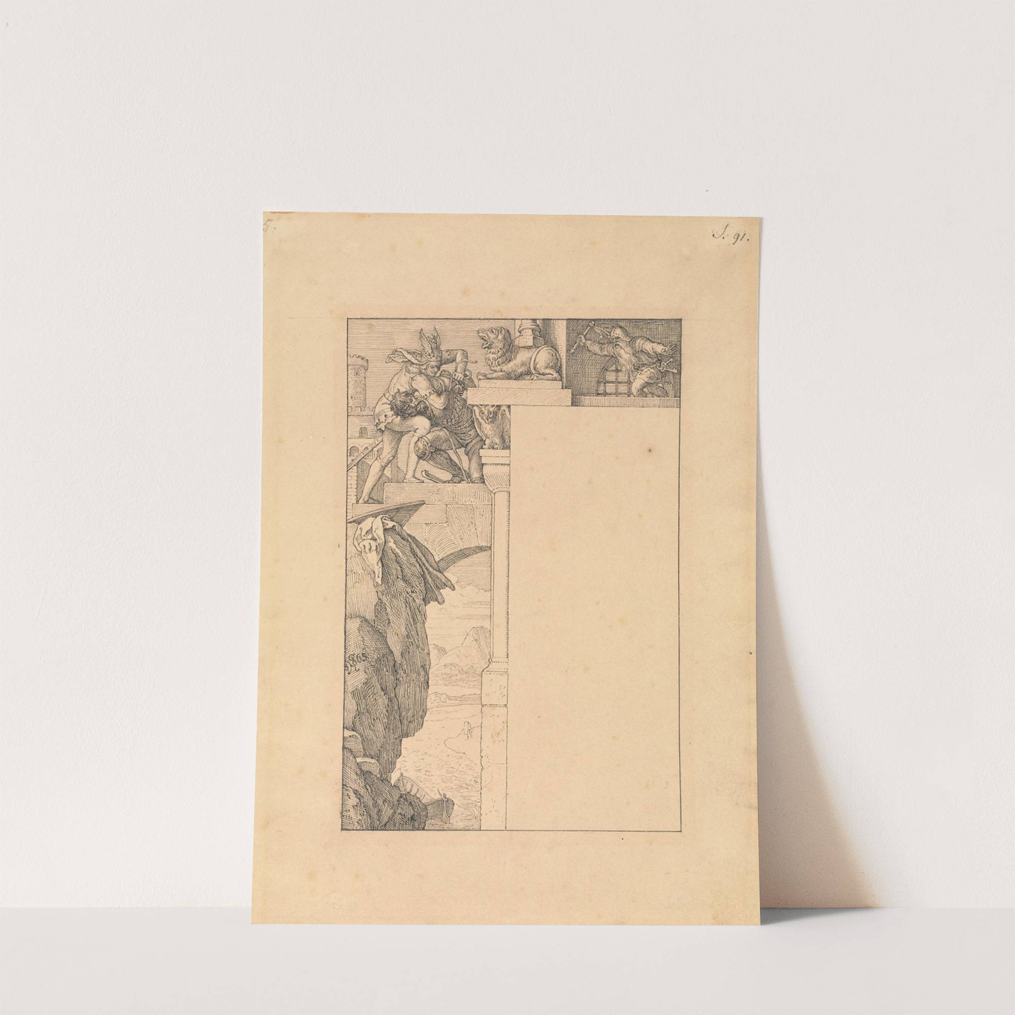 Siegfried Battles with the Gatekeeper as Alberich Approaches by Julius Schnorr Von Carolsfeld - Wall Art Print