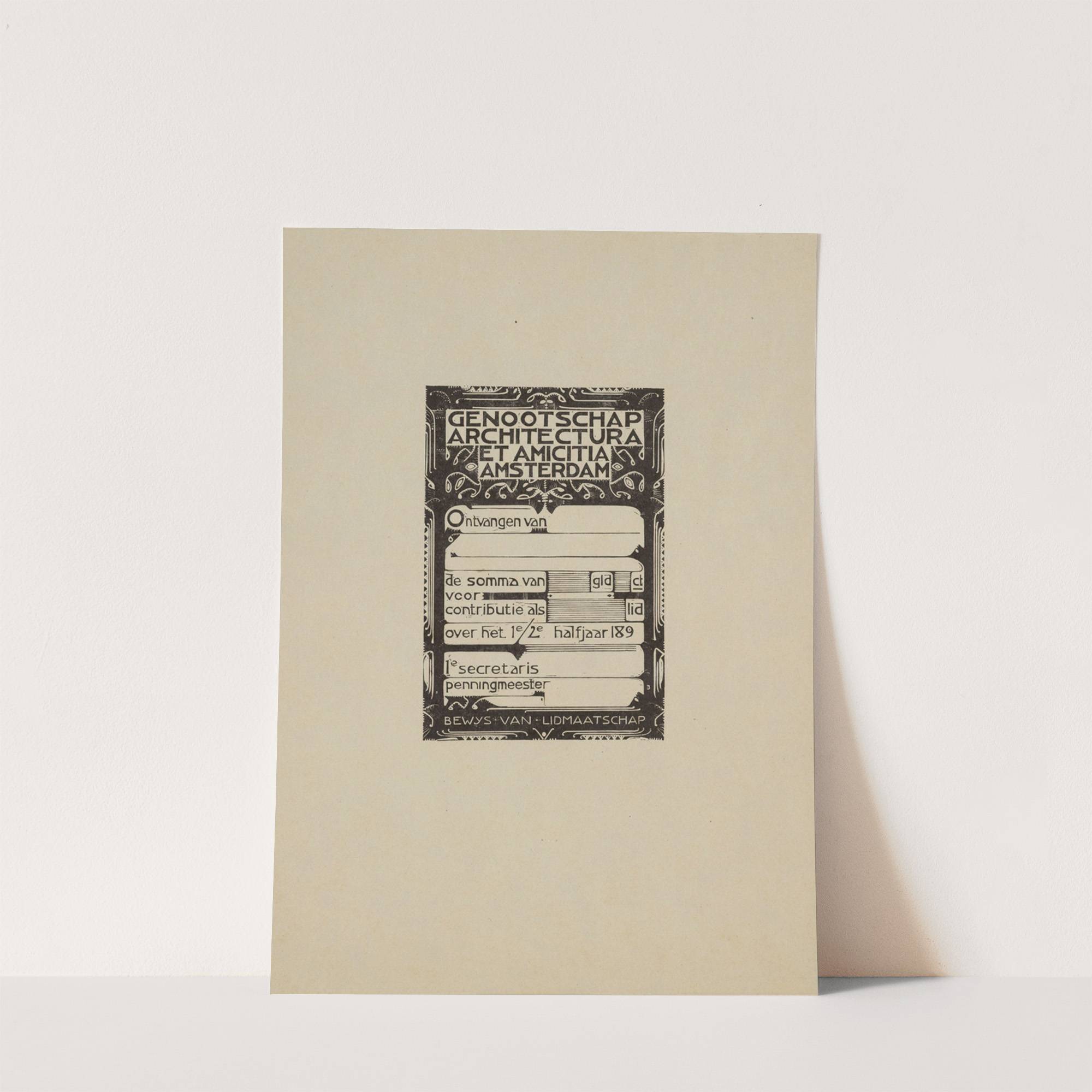 Kwitantie van het Genootschap Architectura et Amiticia. (1925) by Karel de Bazel - Wall Art Print