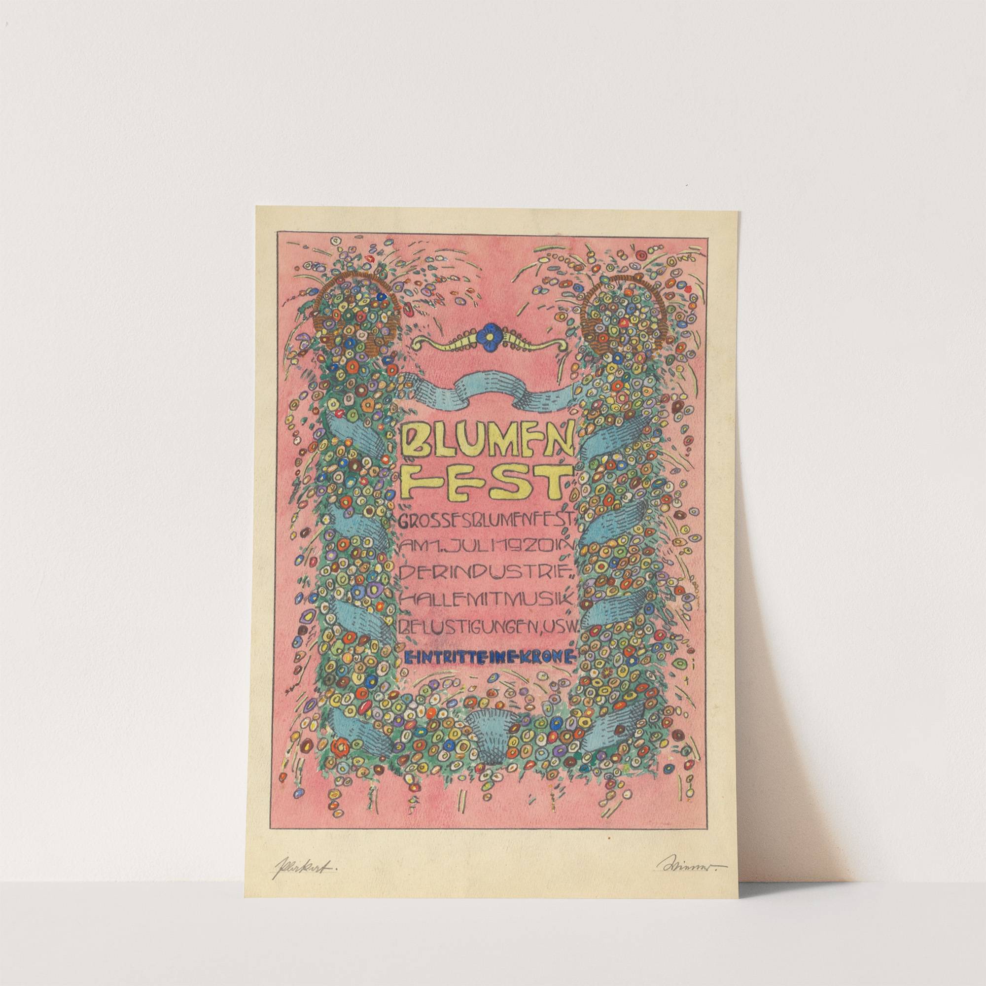 Entwürfe Plakat ‘Blumen fest Grosses Blumenfst Am 1. Juli 1920 in Der Industrie halle mit Musik belustigungen, usw. Eintritt eine Krone’ by Karl Wiener - Wall Art Print
