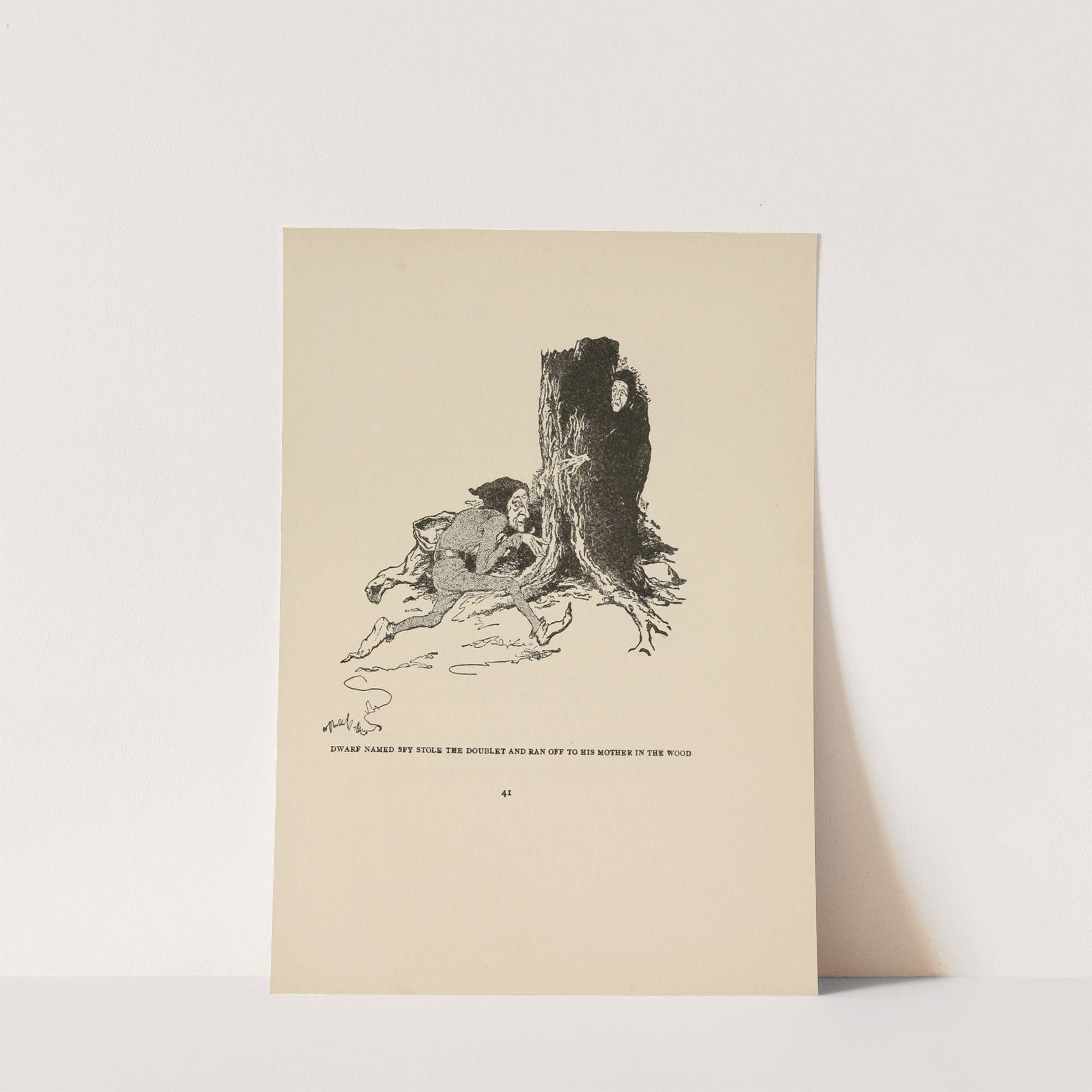 Dwarf named Spy stole the doublet and ran off to his Mother in the wood by Katharine Pyle - Wall Art Print