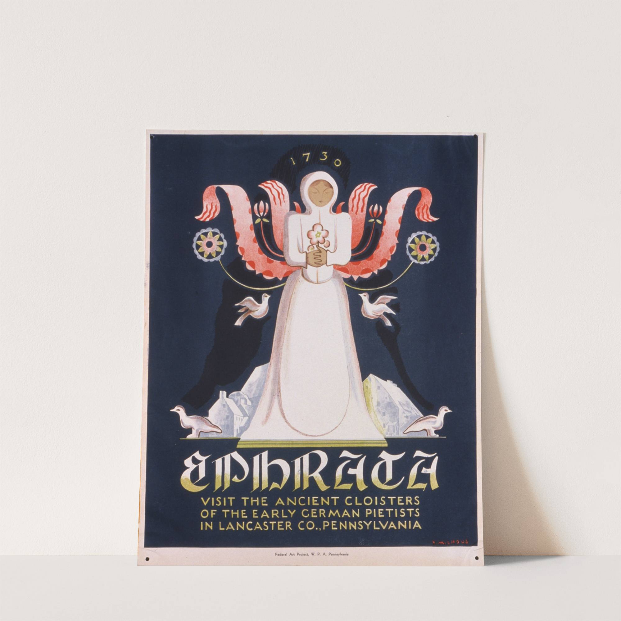 Ephrata Visit the ancient cloisters of the early German pietists in Lancaster Co., Pennsylvania by Katherine Milhous - Wall Art Print