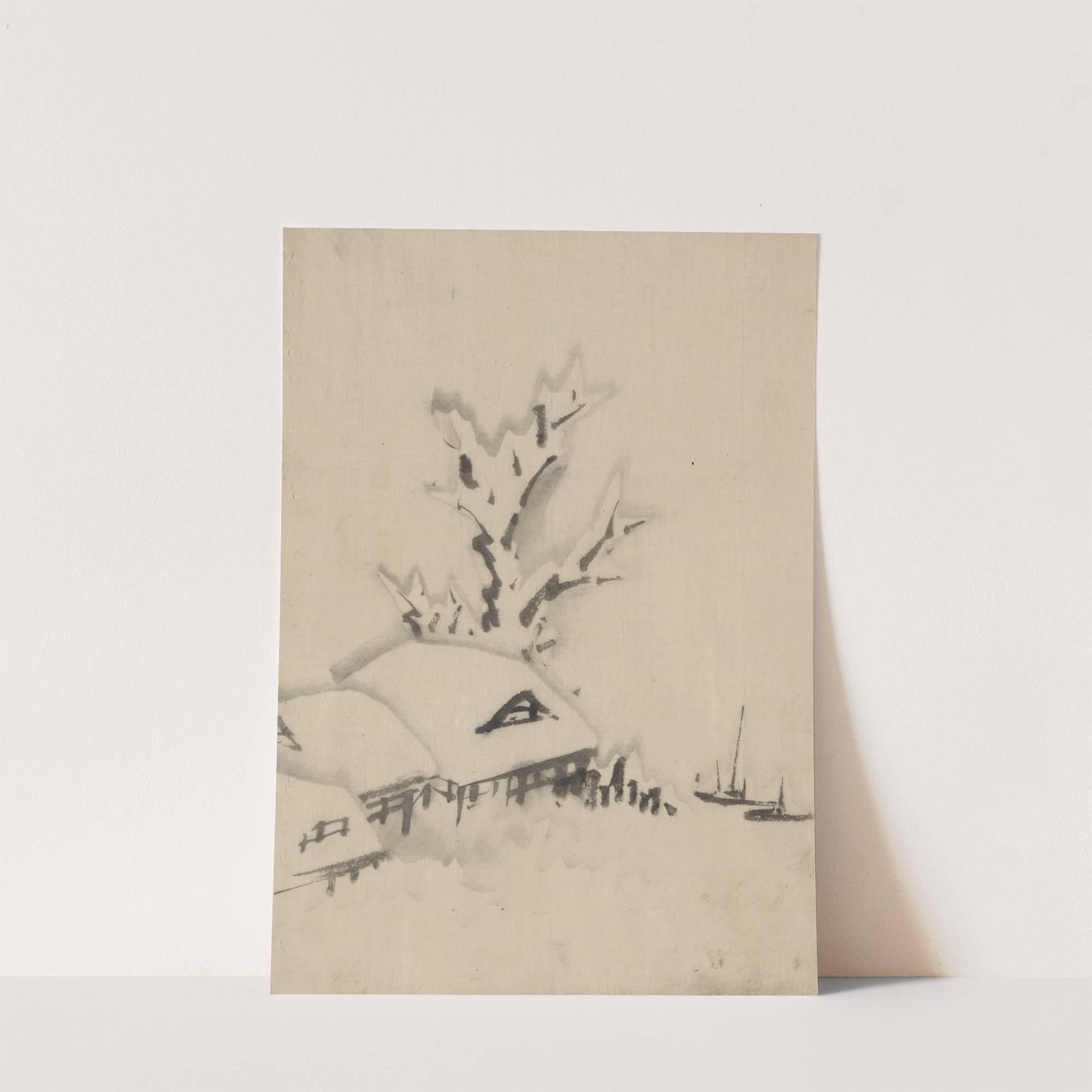 Buildings and large tree on the waterfront, with two boats anchored offshore (1830-1850) by Katsushika Hokusai - Wall Art Print