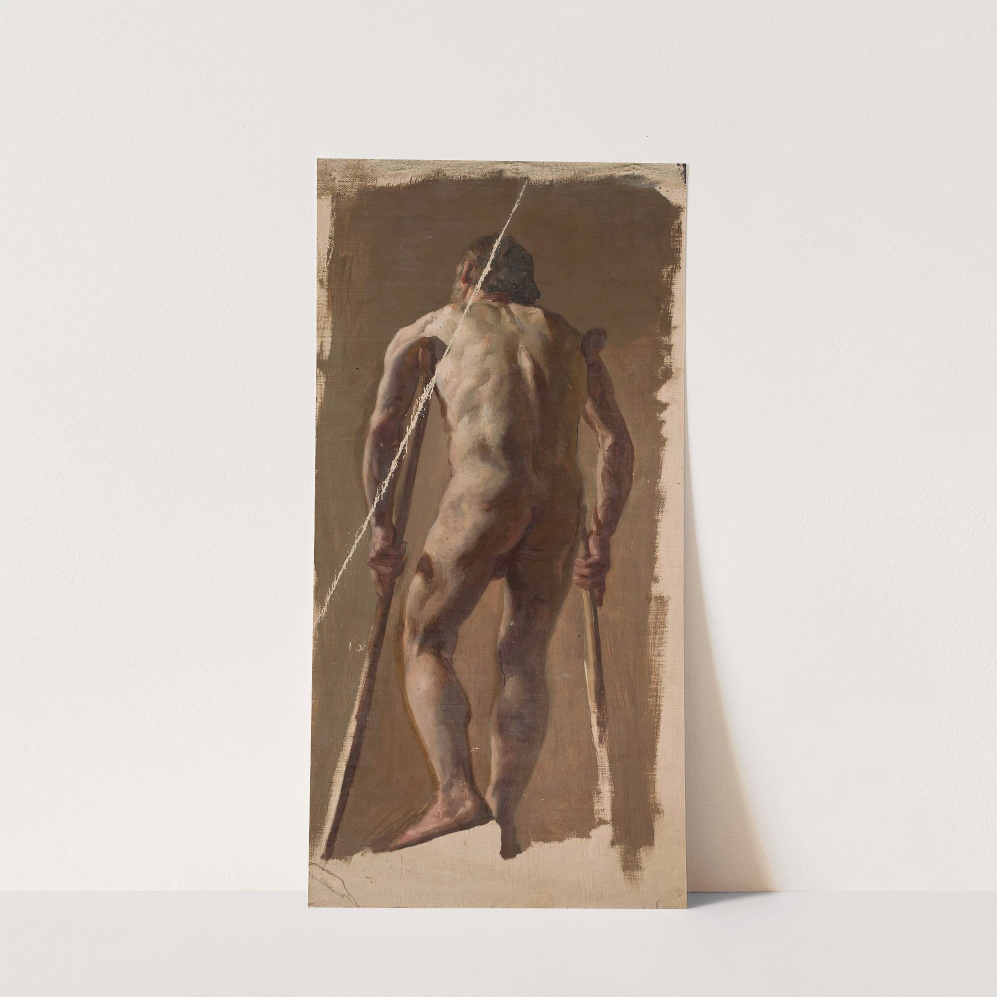 Nude of an old man leaning on crutches, back view by Kazimierz Alchimowicz - Wall Art Print