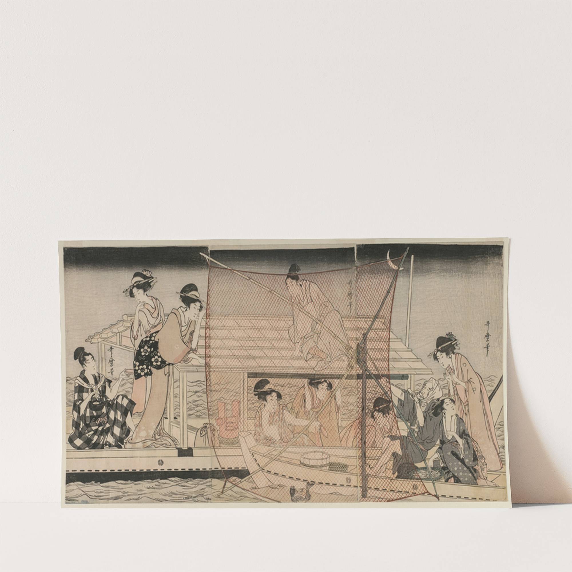 Net Fishing at Night on the Sumida River (c. 1800) by Kitagawa Utamaro - Wall Art Print