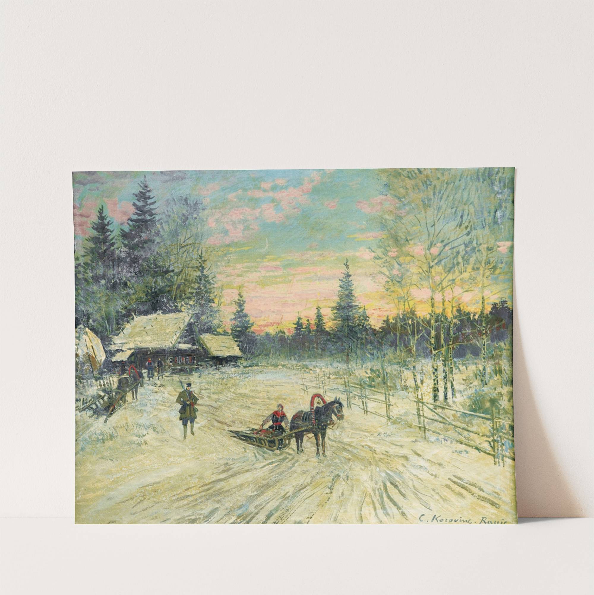 Jeune femme sur un traineau s’éloignant d’un chasseur by Konstantin Alexeevich Korovin  - Wall Art Print