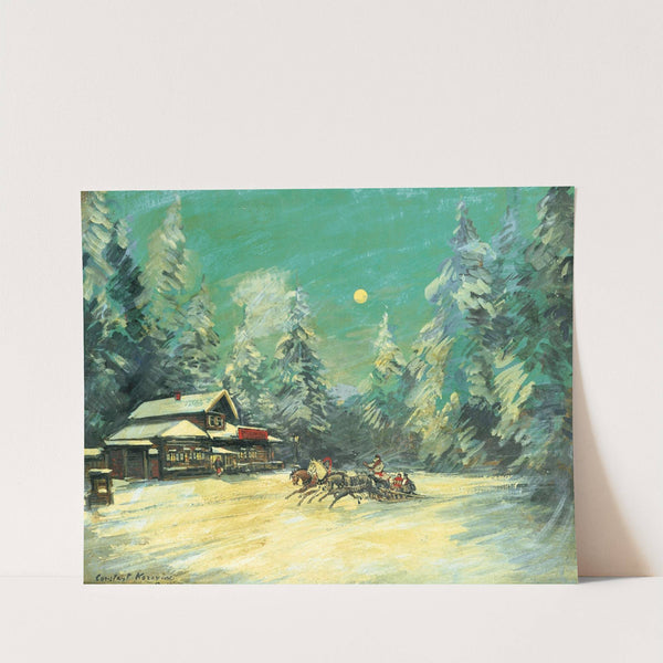 Troïka passant devant une auberge la nuit by Konstantin Alexeevich Korovin - Wall Art Print