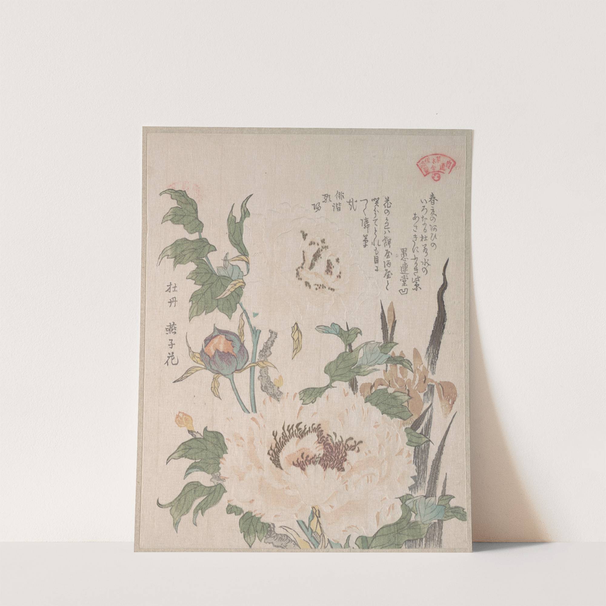 Peonies and Iris by Kubo Shunman - Wall Art Print