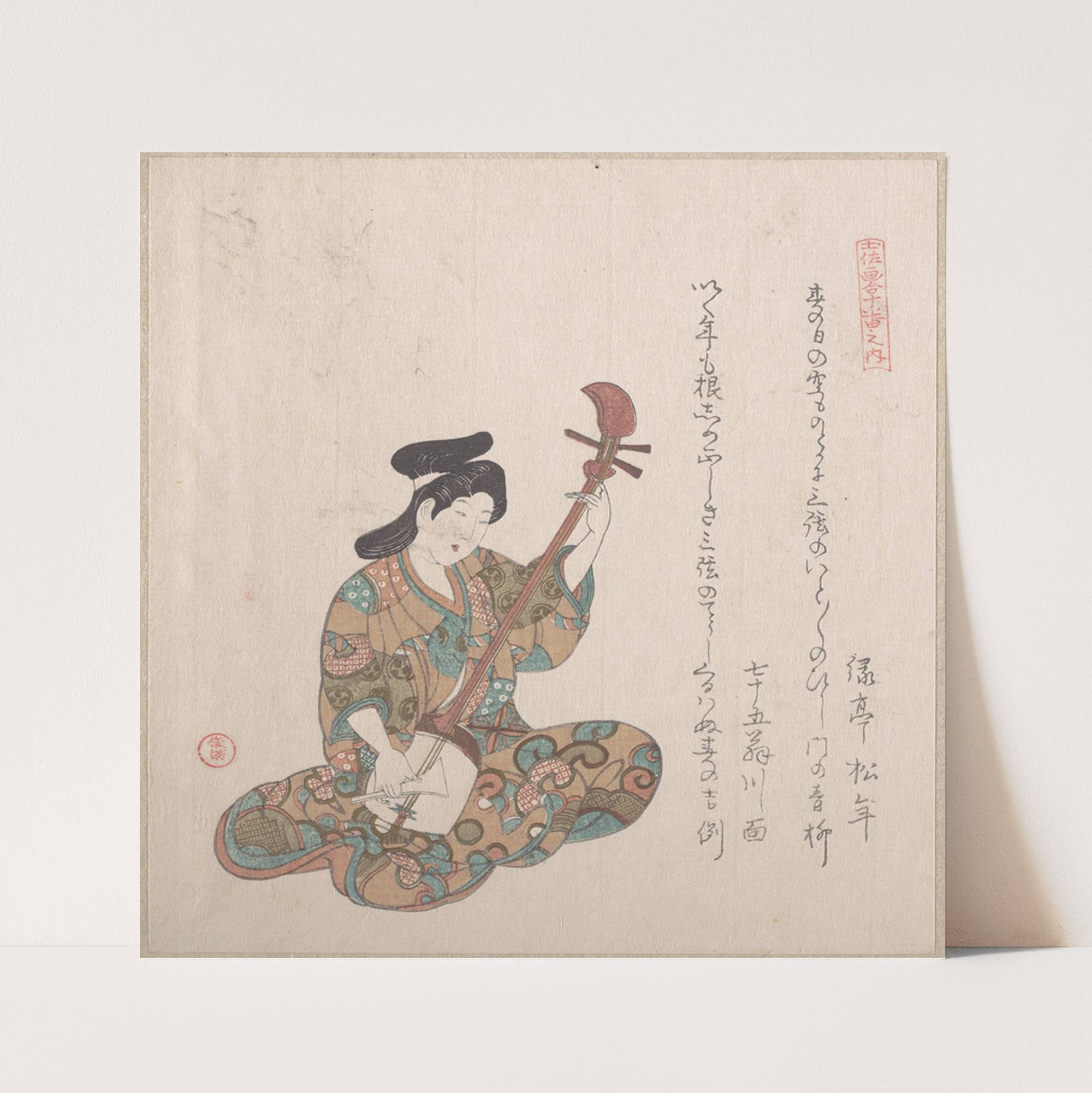 Woman Playing on the Shamisen (1815) by Kubo Shunman - Wall Art Print