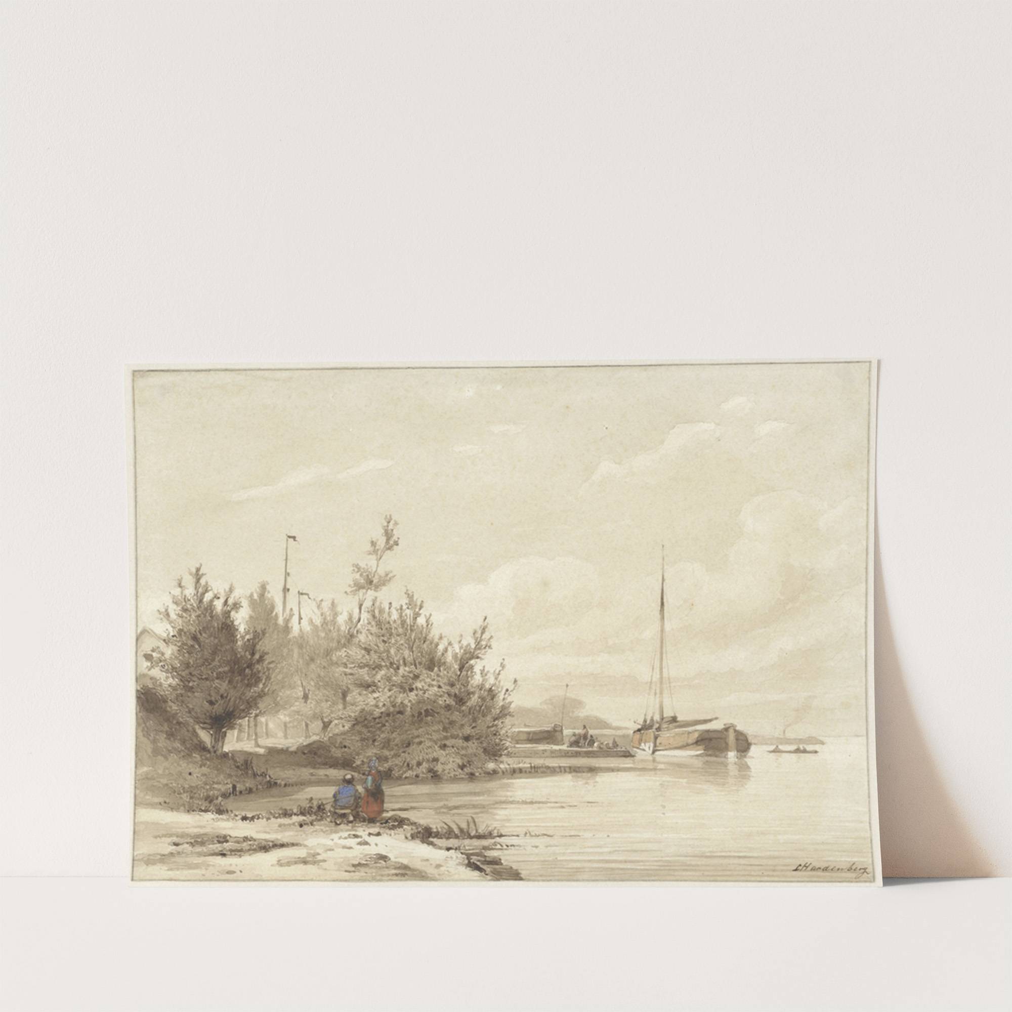 Landschap met gemeerde boten aan een rivieroever by Lambertus Hardenberg - Wall Art Print