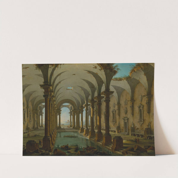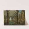A capriccio of partially ruined baths with people swimming by Antonio Joli - Wall Art Print