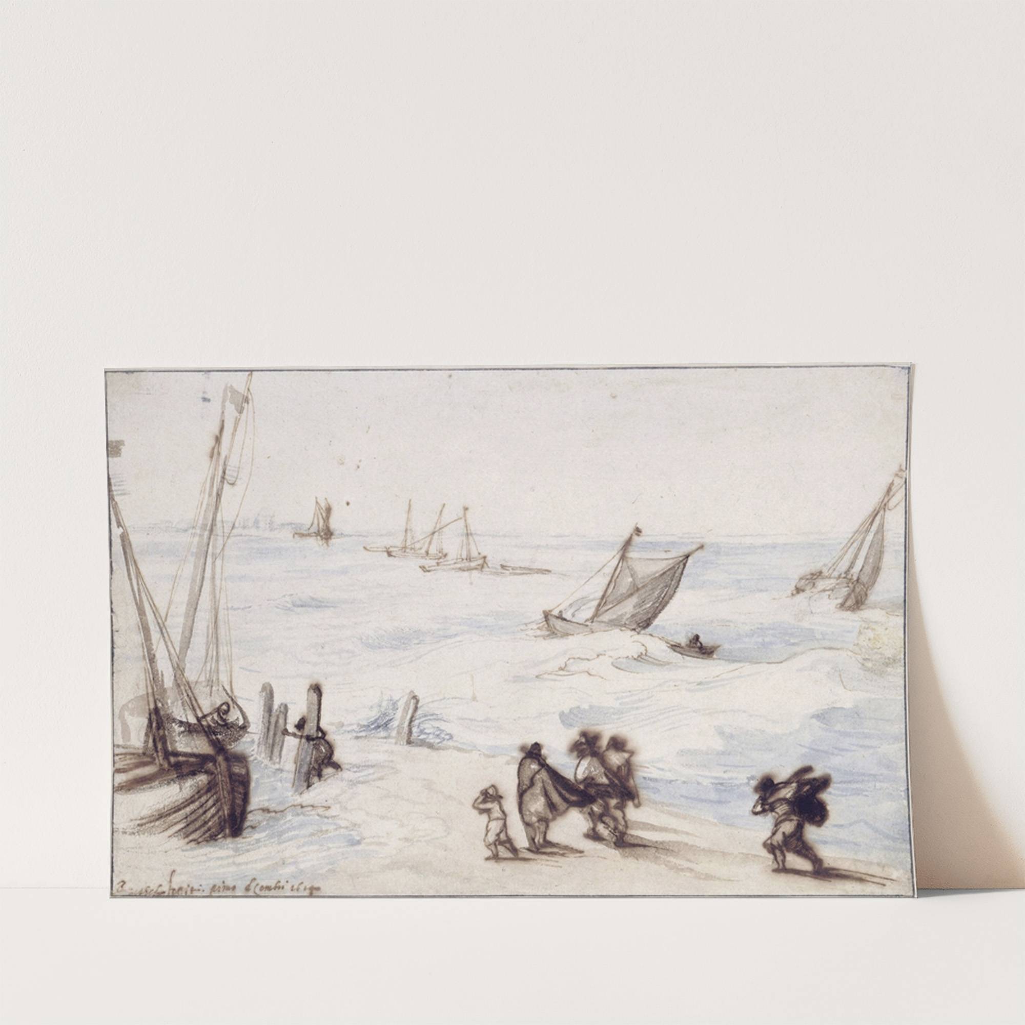 Beach with sailboats and stormy sea by Jan Brueghel The Elder - Wall Art Print