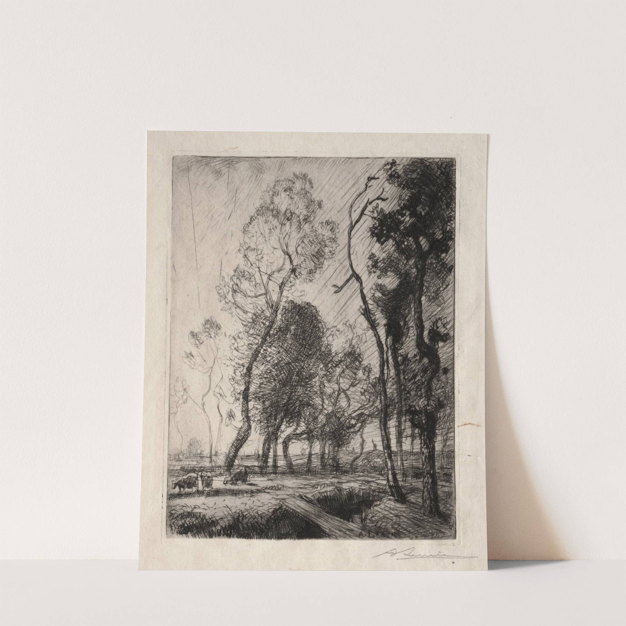 Coucher de Soleil derrière les Arbres (1909) by Auguste Louis Lepère - Wall Art Print