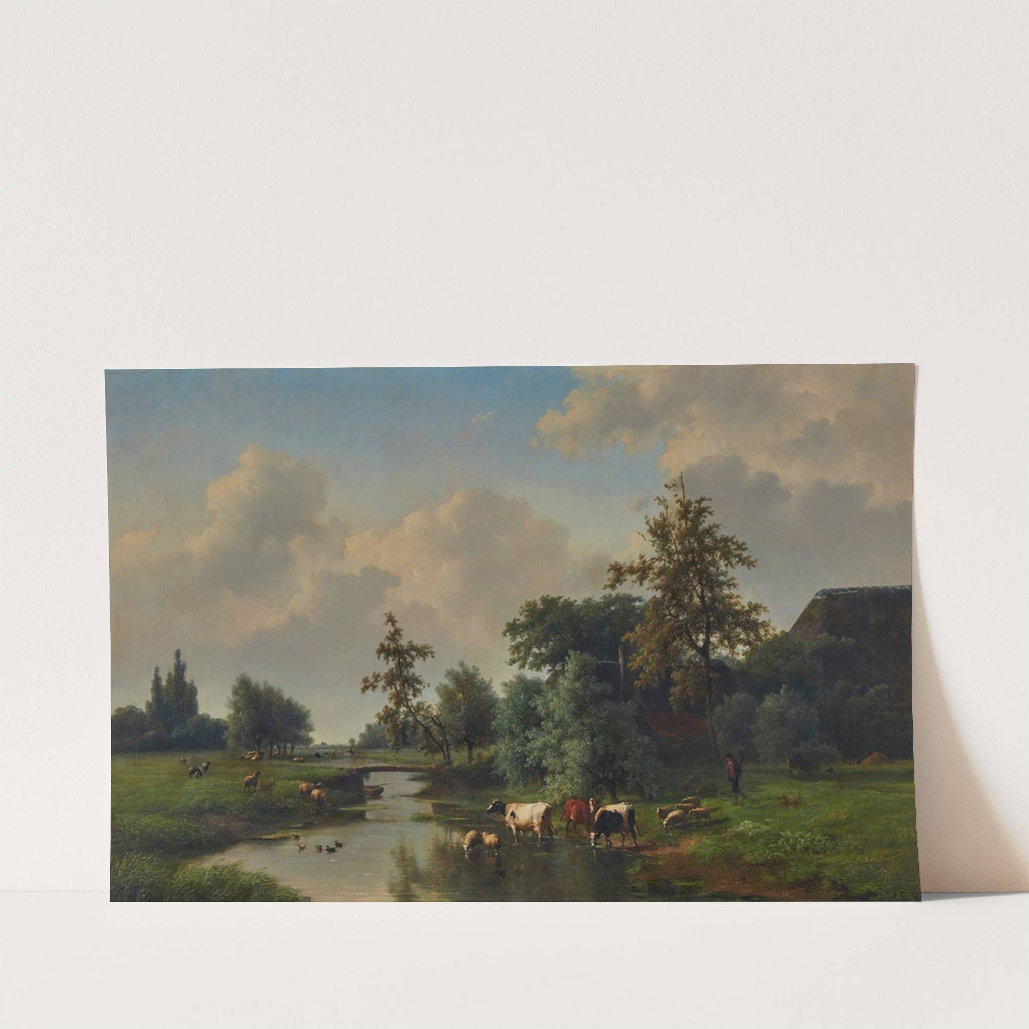 Farm Animals By A Stream by Eugène Joseph Verboeckhoven - Wall Art Print