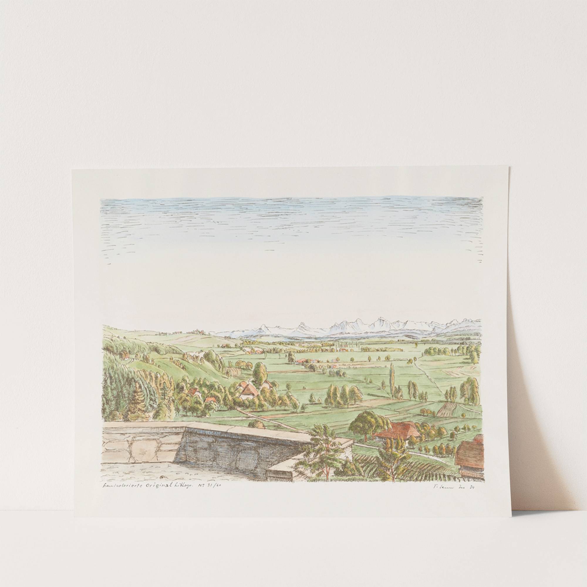 Gampelen; Aussicht von der Scheurer-Gedenksteinanlage by Traugott Senn - Wall Art Print