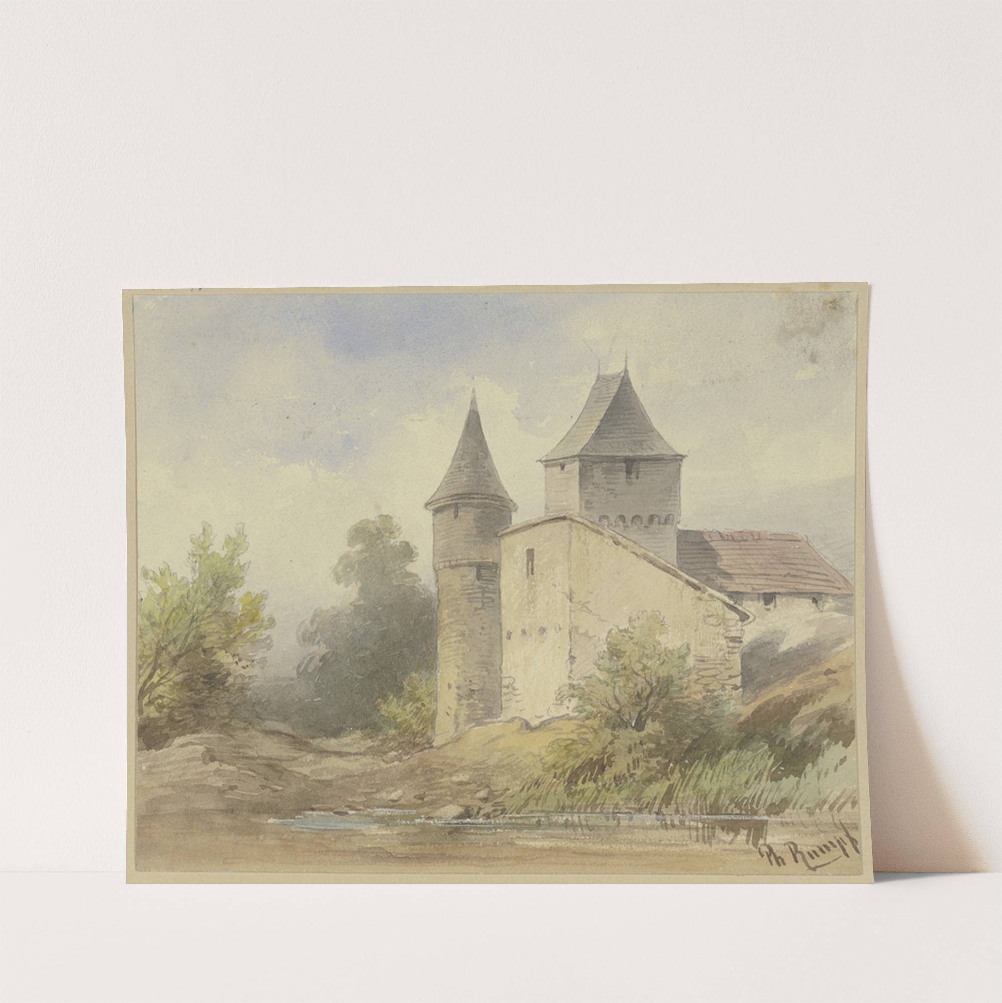 Gebäudegruppe mit rundem Turm by Philipp Rumpf - Wall Art Print